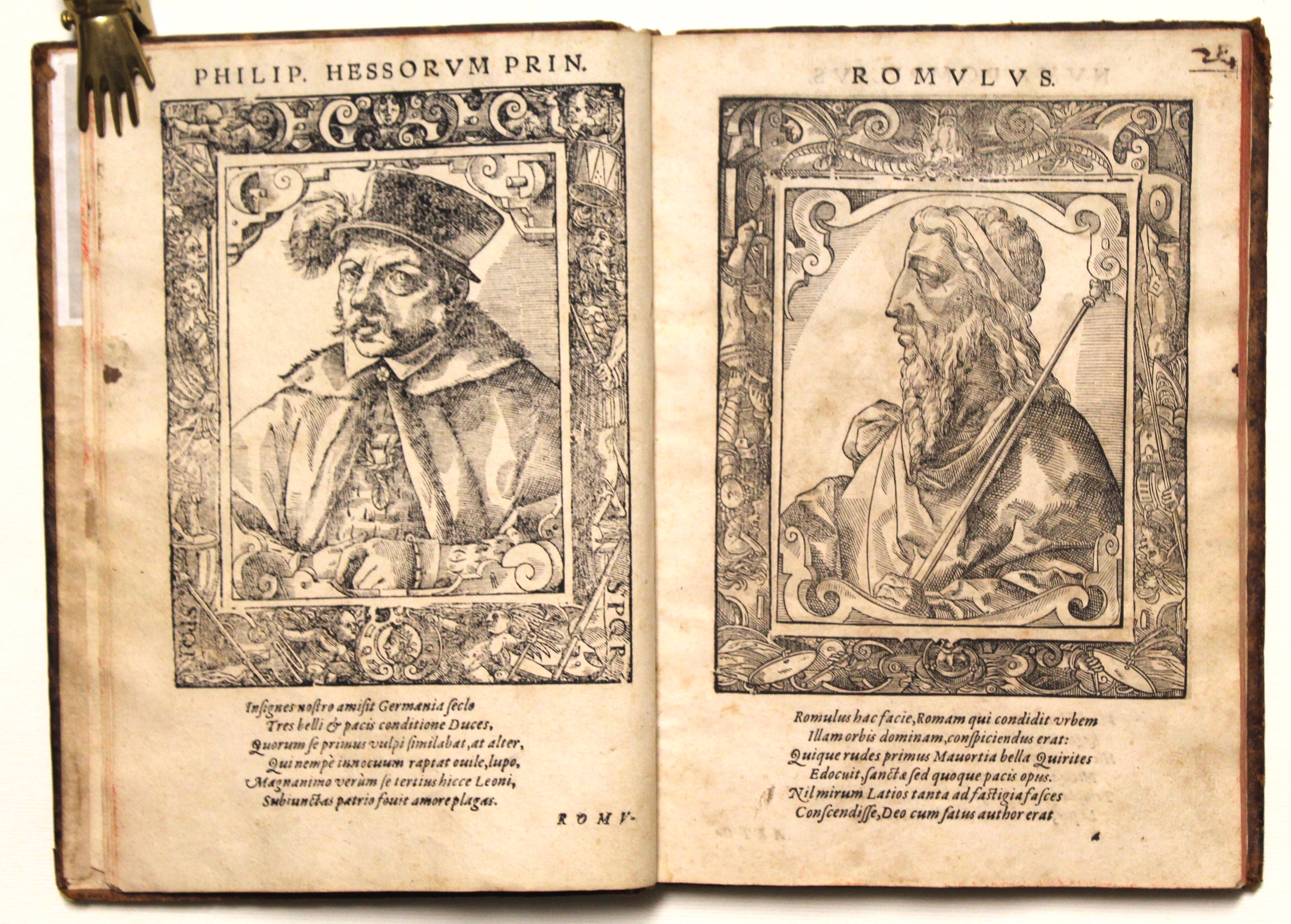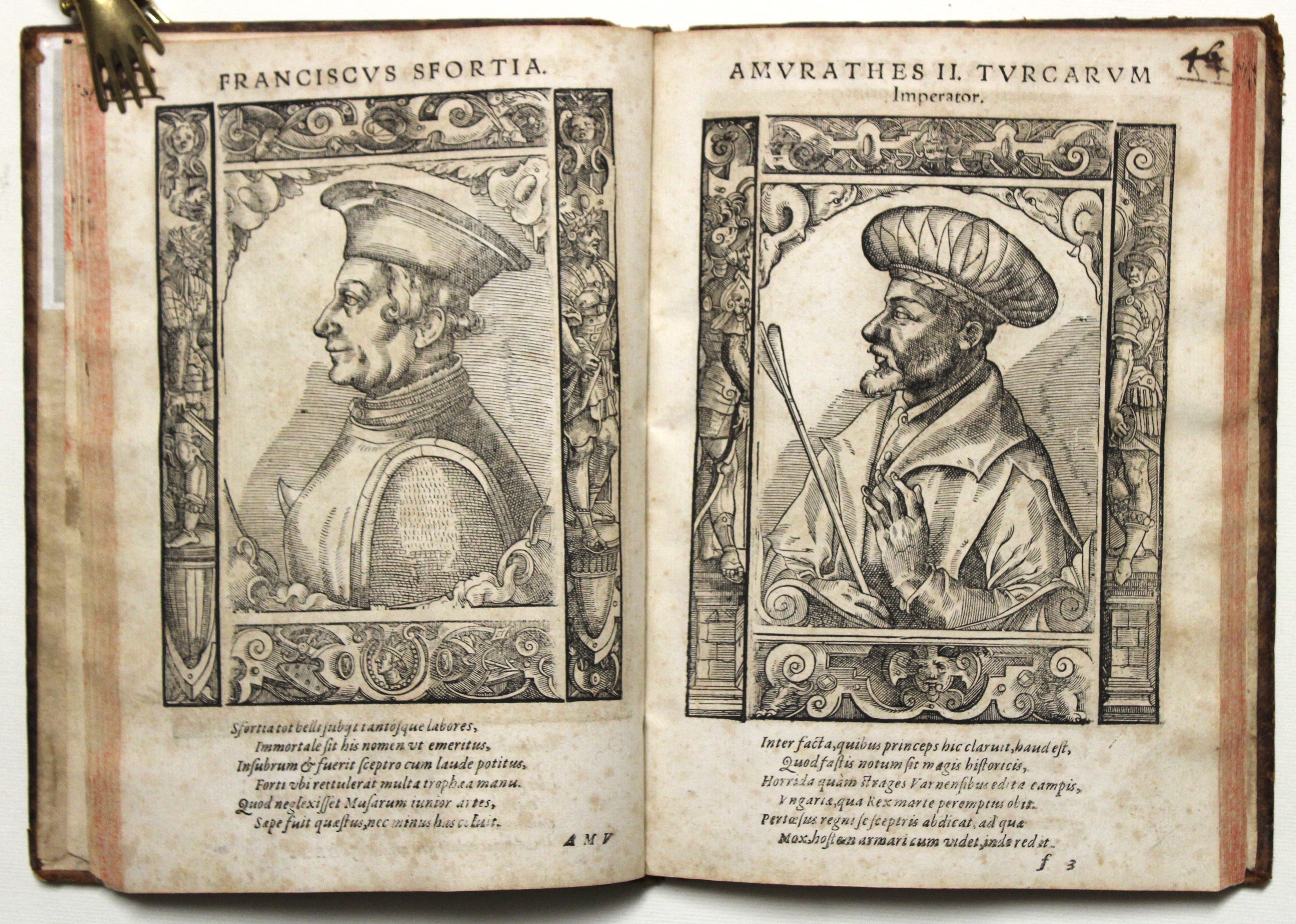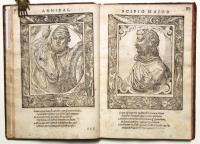 Rara edizione sulla celebre raccolta di ritratti del museo gioviano. Ritratto di un antenato del dedicatario dell’opera. Sono inoltre realisticamente raffigurati fra gli altri, a partire da Romolo, Alessandro Magno, Annibale e Scipione, Attila, Carlo Magno, Can Grande della Scala, il Gattamelata, Francesco Sforza, Cosimo de’ Medici, bartolomeo Colleoni, Mattia Corvino, Galeazzo Sforza, Francesco Gonzaga, Alfonso d’Este, Ferdinando Cortez, Solimano per finire con Niccolò Capponi.
