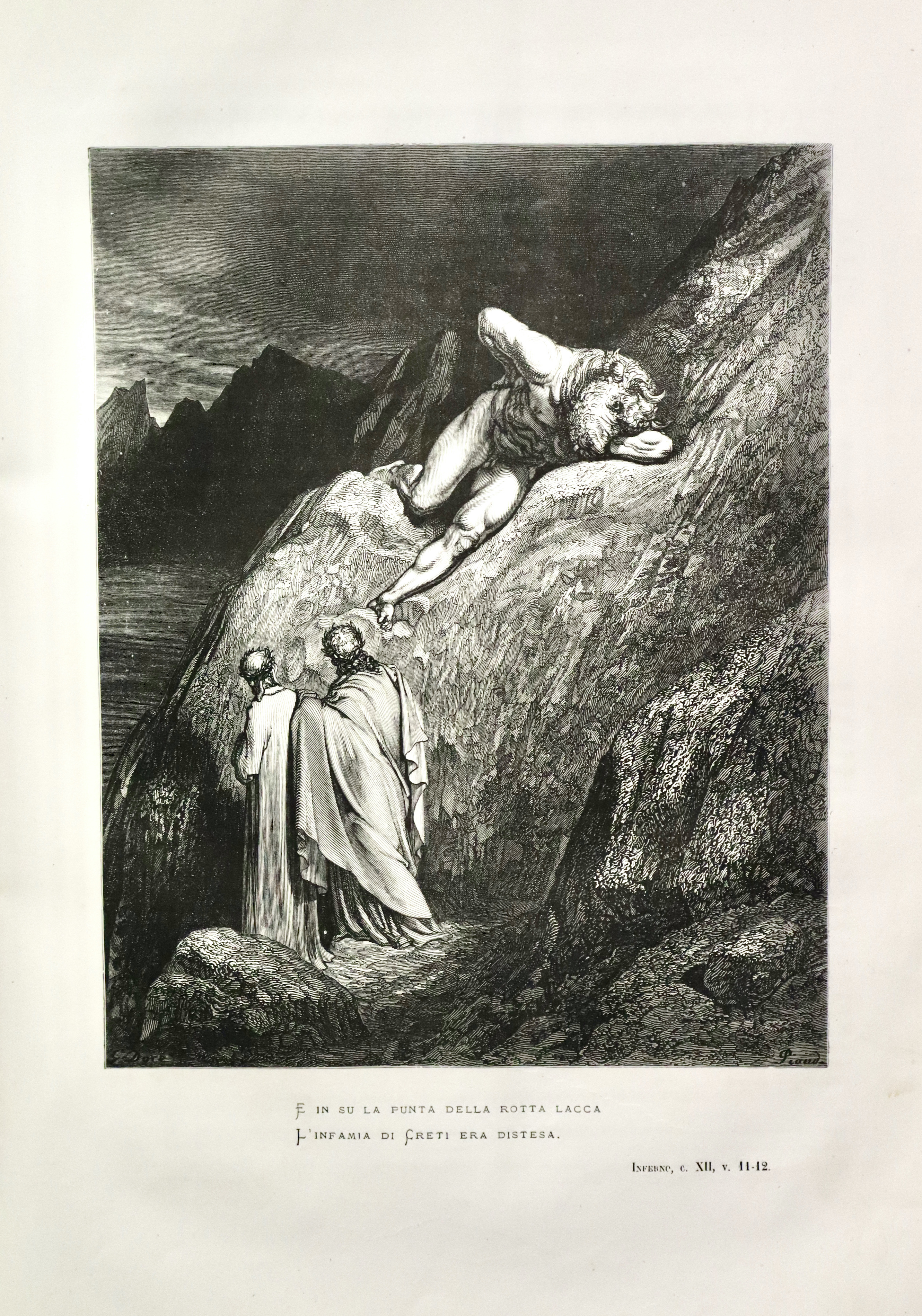 First edition illustrated by Gustave Doré (as cited by Mambelli), an extraordinary illustrator born in Strasbourg on January 6, 1832, and died in Paris on January 23, 1883; he is considered one of the most prolific and successful book illustrators of the late nineteenth century.