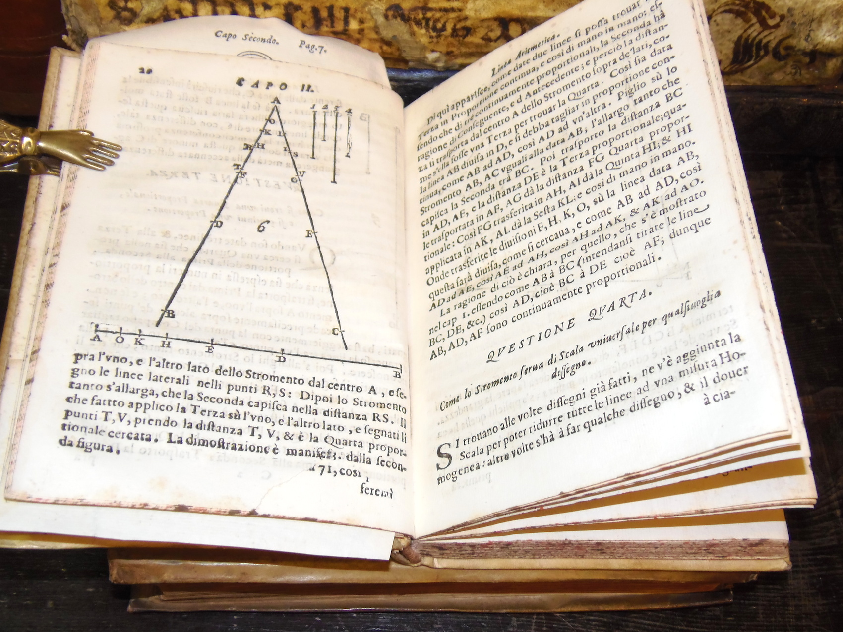 Il gesuita Paolo Casati (1617-1707) vuole integrare la celebre opera di Galileo “ il compasso geometrico”, strumento del quale Galileo fu unico inventore (dopo la disputa avuta con Baldassarre Capra); nella sua prefazione l’autore, dopo aver ricordato quanto fosse difficile trovare libri sull'uso del compasso, fa sapere di non aver «havuto fortuna di vedere mai alcun autore, fuorché il Galilei, di cui ventidue anni sono nella libreria nostra del Collegio Romano mi capitò un picciolo libretto di questa materia da me allhora poco inteso» .