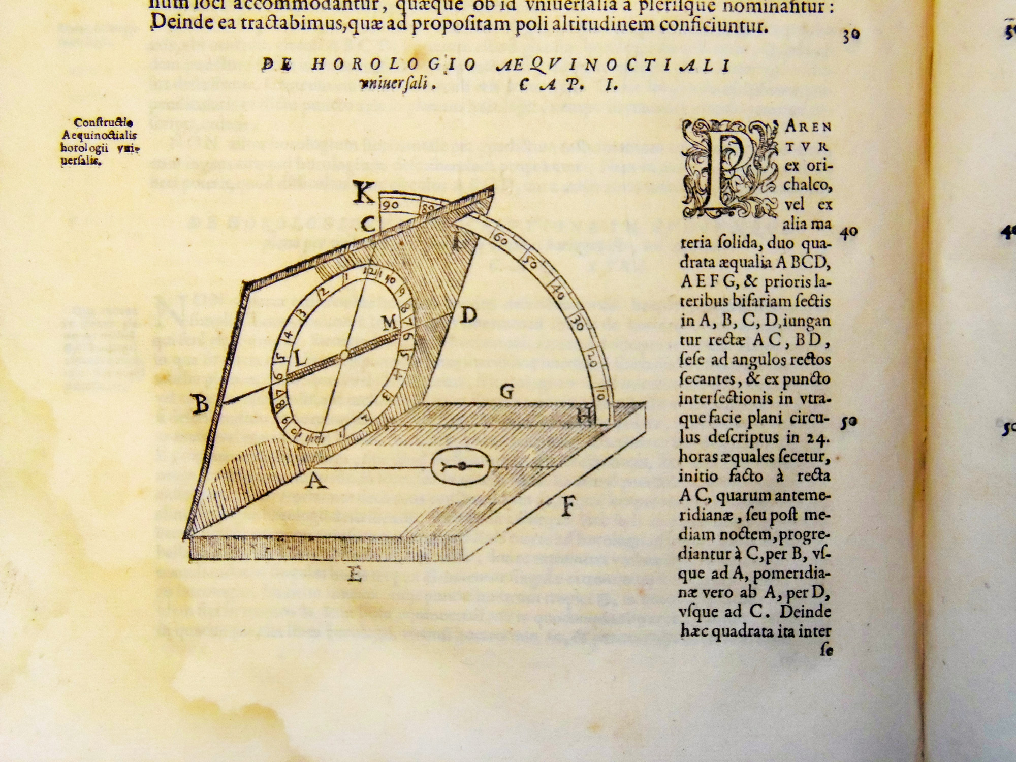 First edition of this famous book, “Summa” of renaissance gnomonics. The author, called “Euclid of the XVI century” bases his study of gnonomonic on geometry and describes the different ways of constructing sundials and also discusses the astronomical background.
