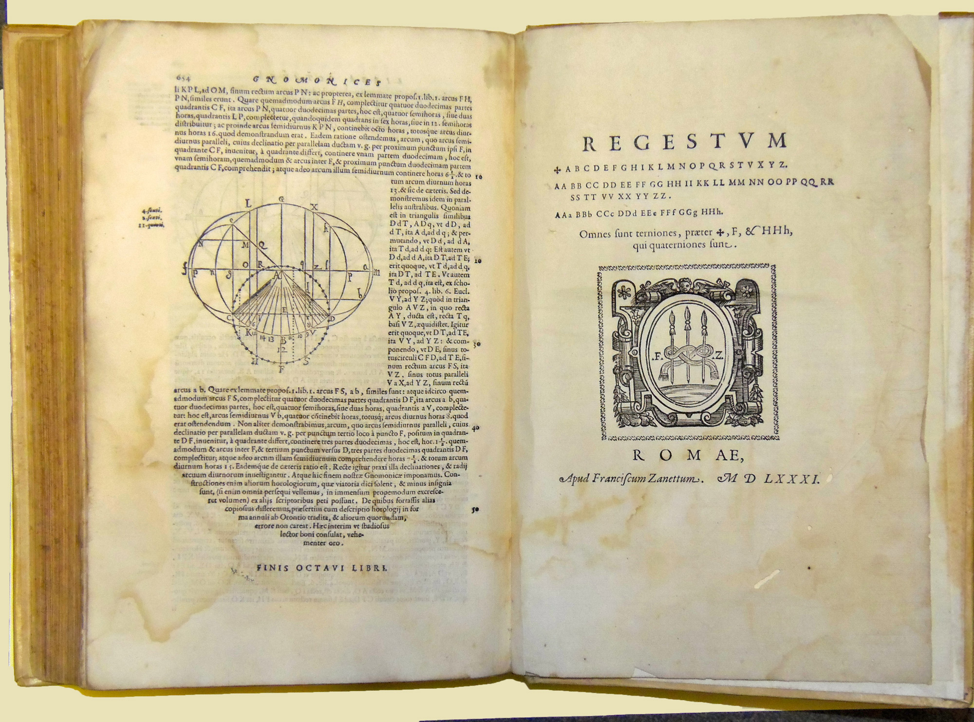 Gnomonices libri octo, in quibus non solum horologiorum solarium, sed aliarum quoque rerum, quae ex gnomonis umbra conosci possunt, descriptiones geometrice demonstratur.