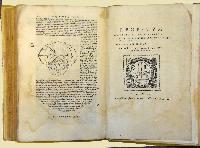 In 2° (mm 315x210); Leaves (8), pages 654, leaf (1). Engraved title, colophon at end, woodcut diagrams, historiated initials, printer’s device at colophon. XVIII century vellum with title on label. Title a little soiled and waterstained, light mainly marginal waterstaining, some spotting, a few leaves browned.
