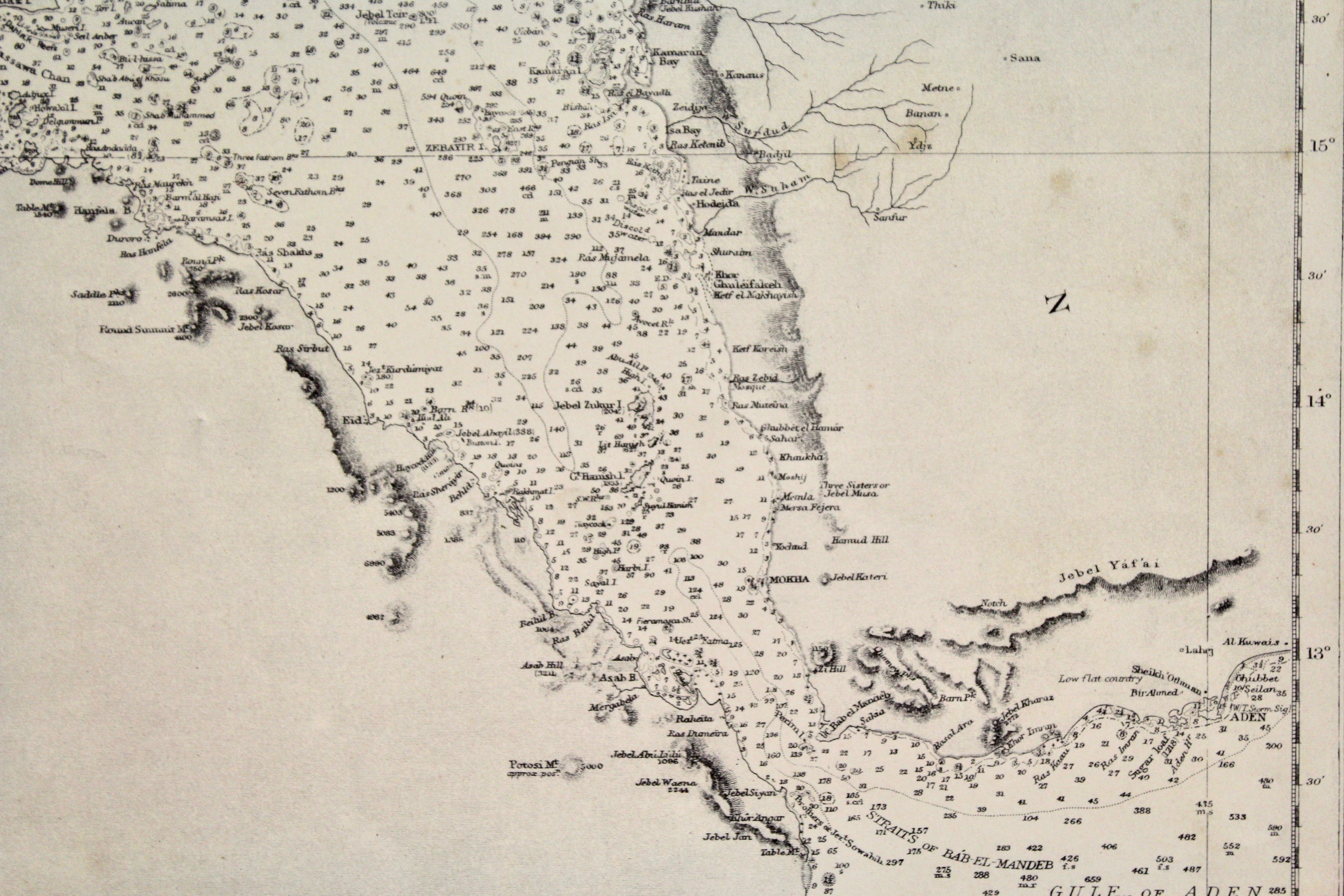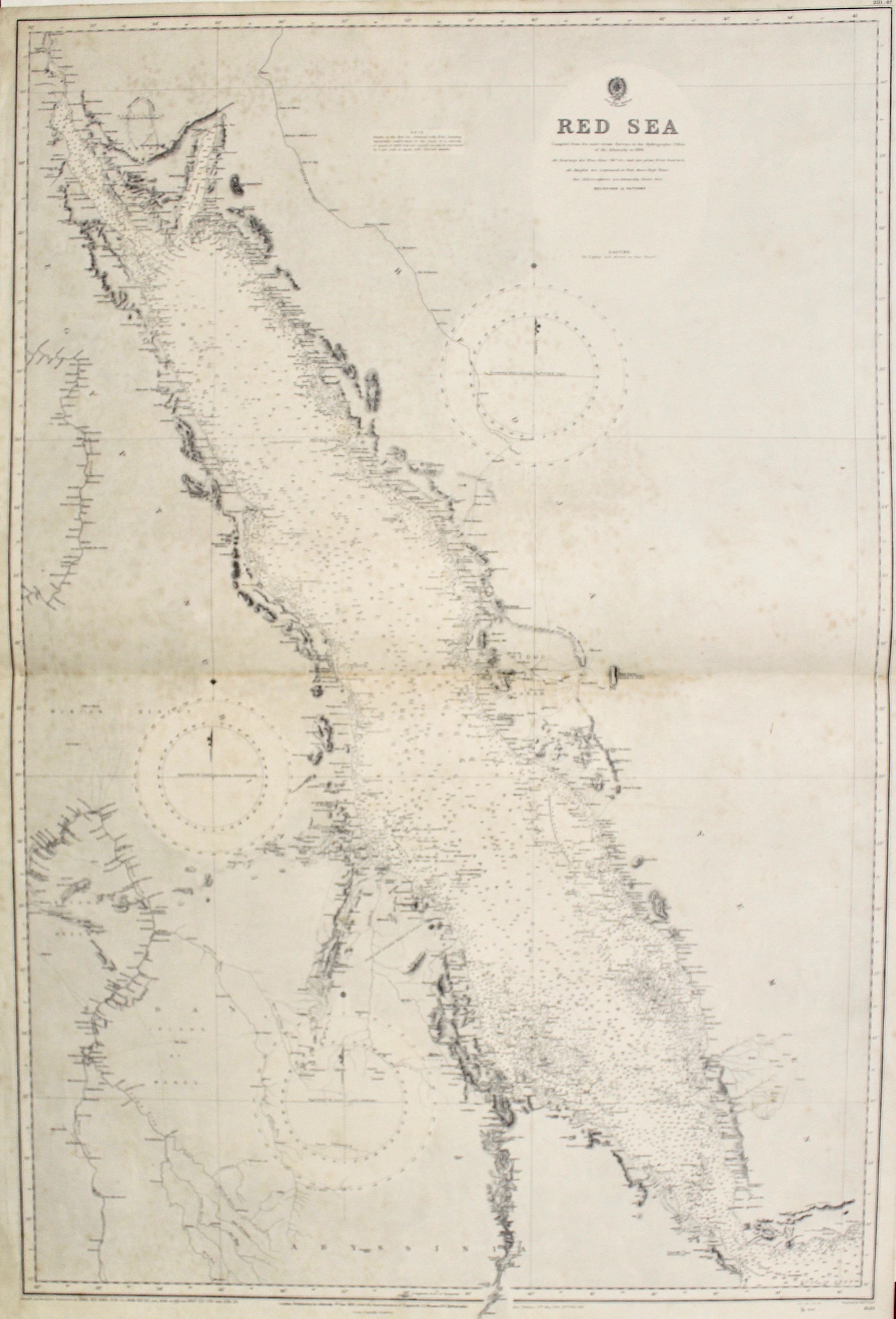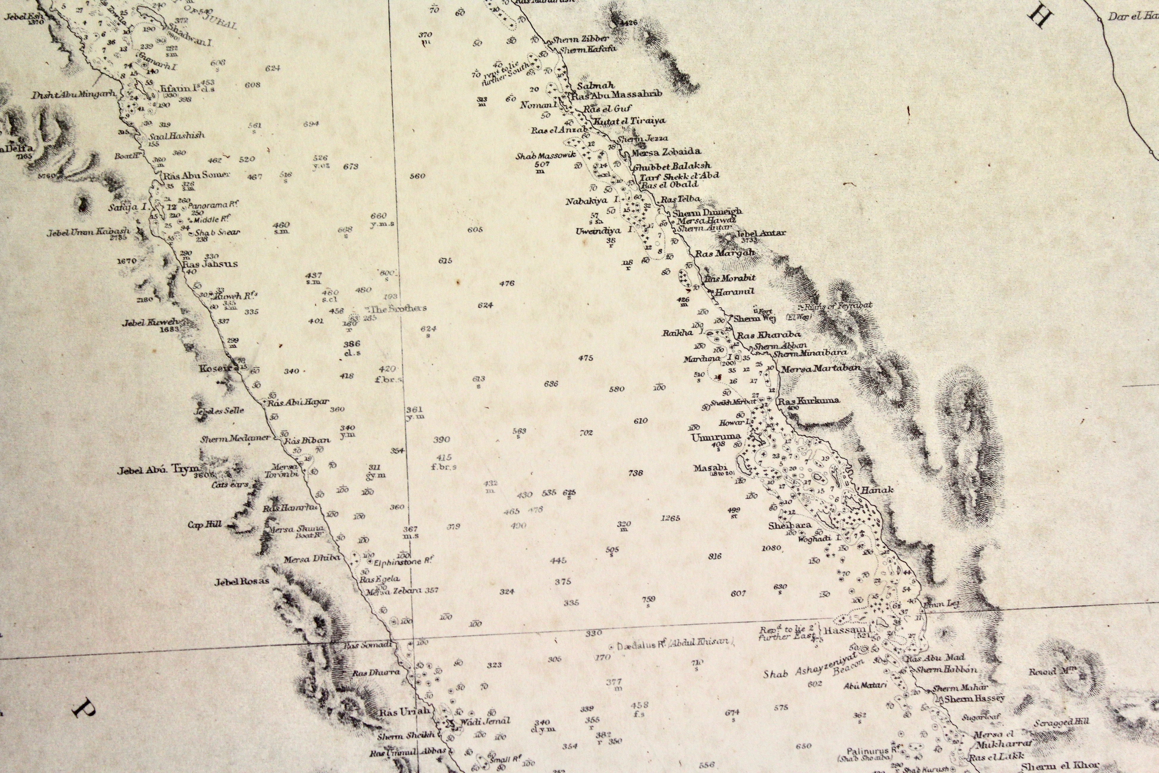 Engraving by Edward Weller, mm 987x660. Large nautical map of the Red Sea. Good condition.