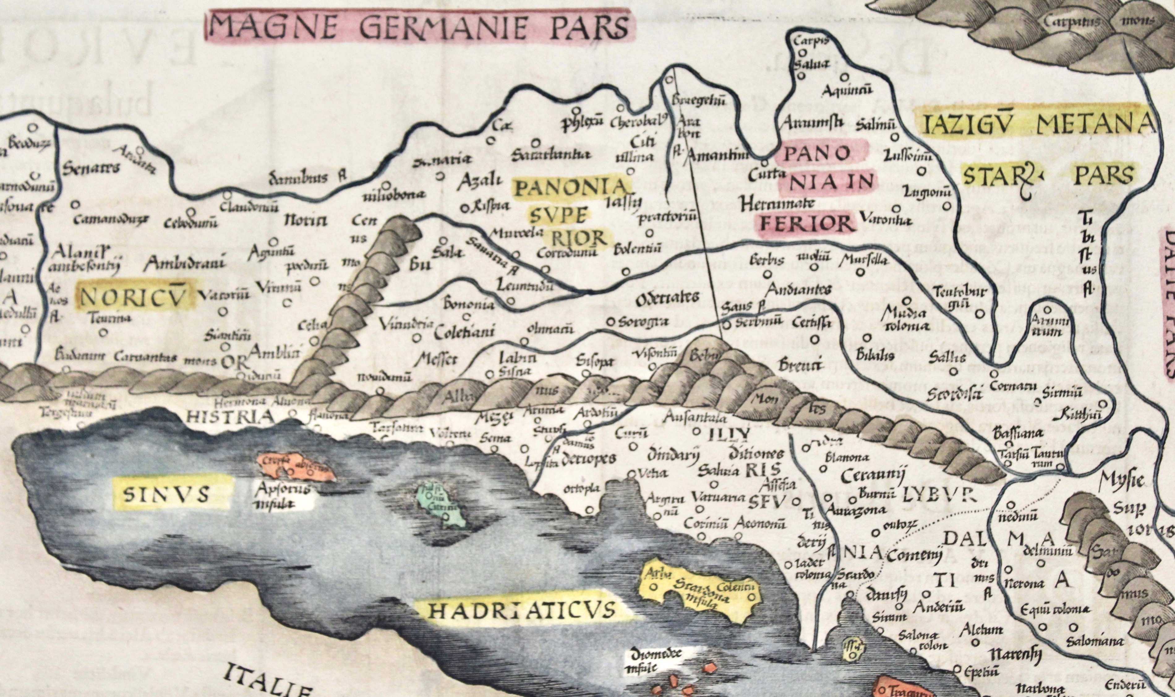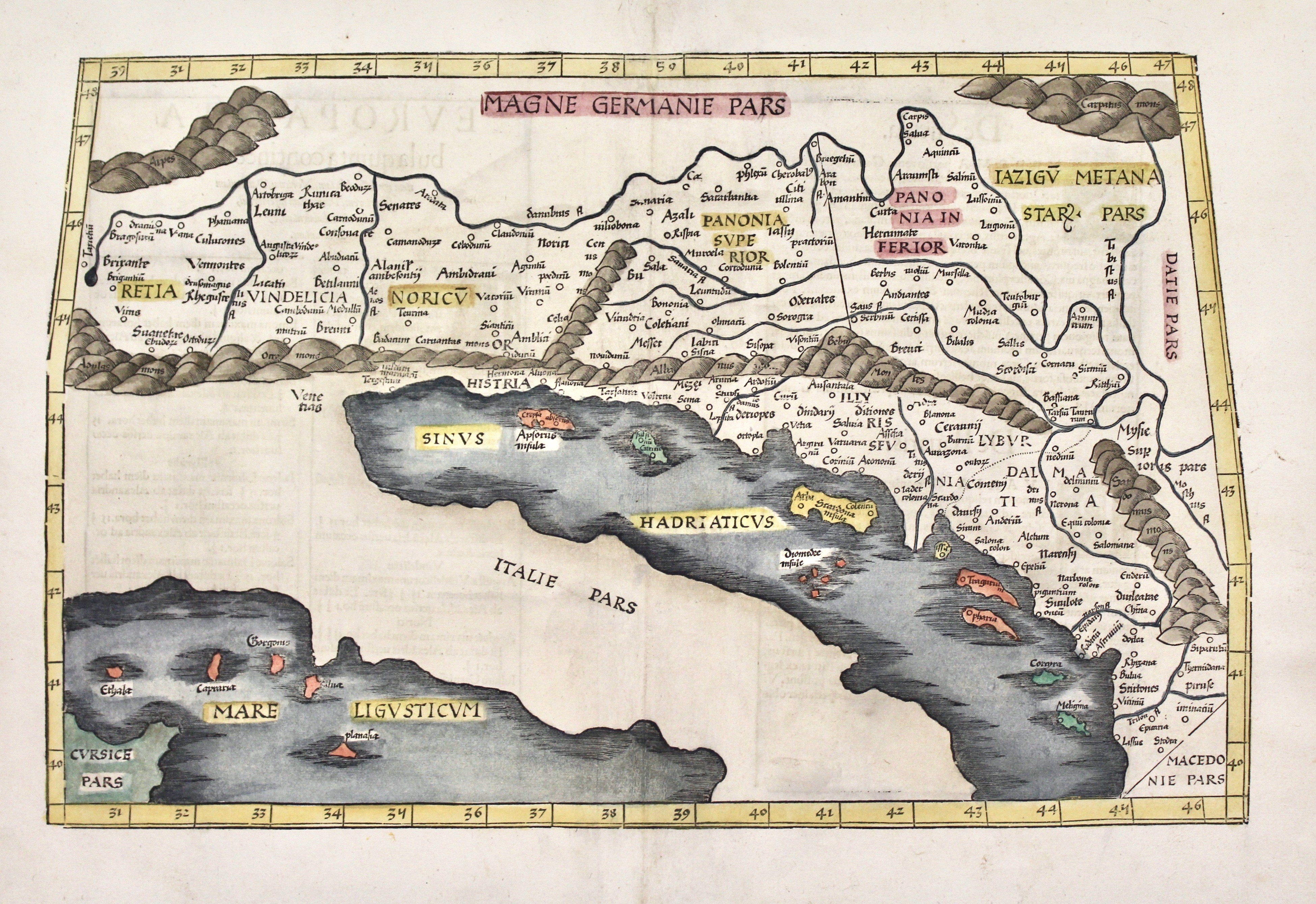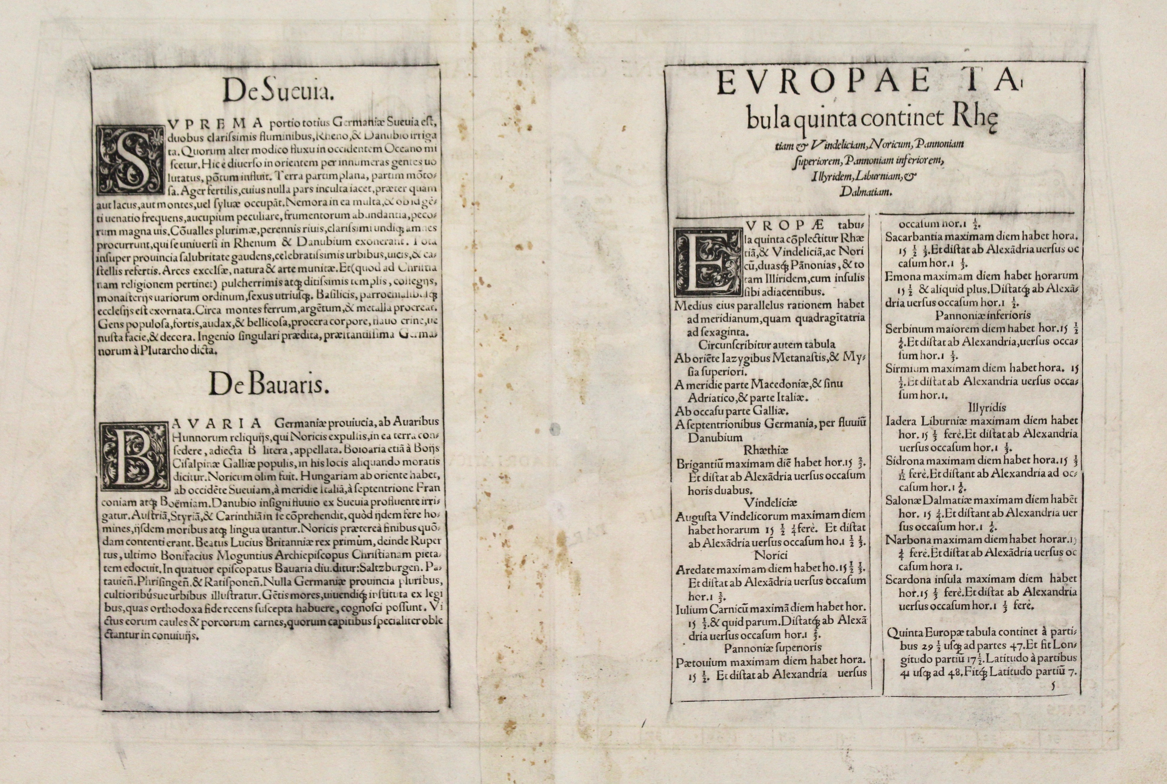 Europae Tabula quinta continet Rhetiam & Vindeliciam, Noricum, Pannoniam superiorem, Pannoniam inferiorem, Illyridem, Liburniam, & Dalmatiam.