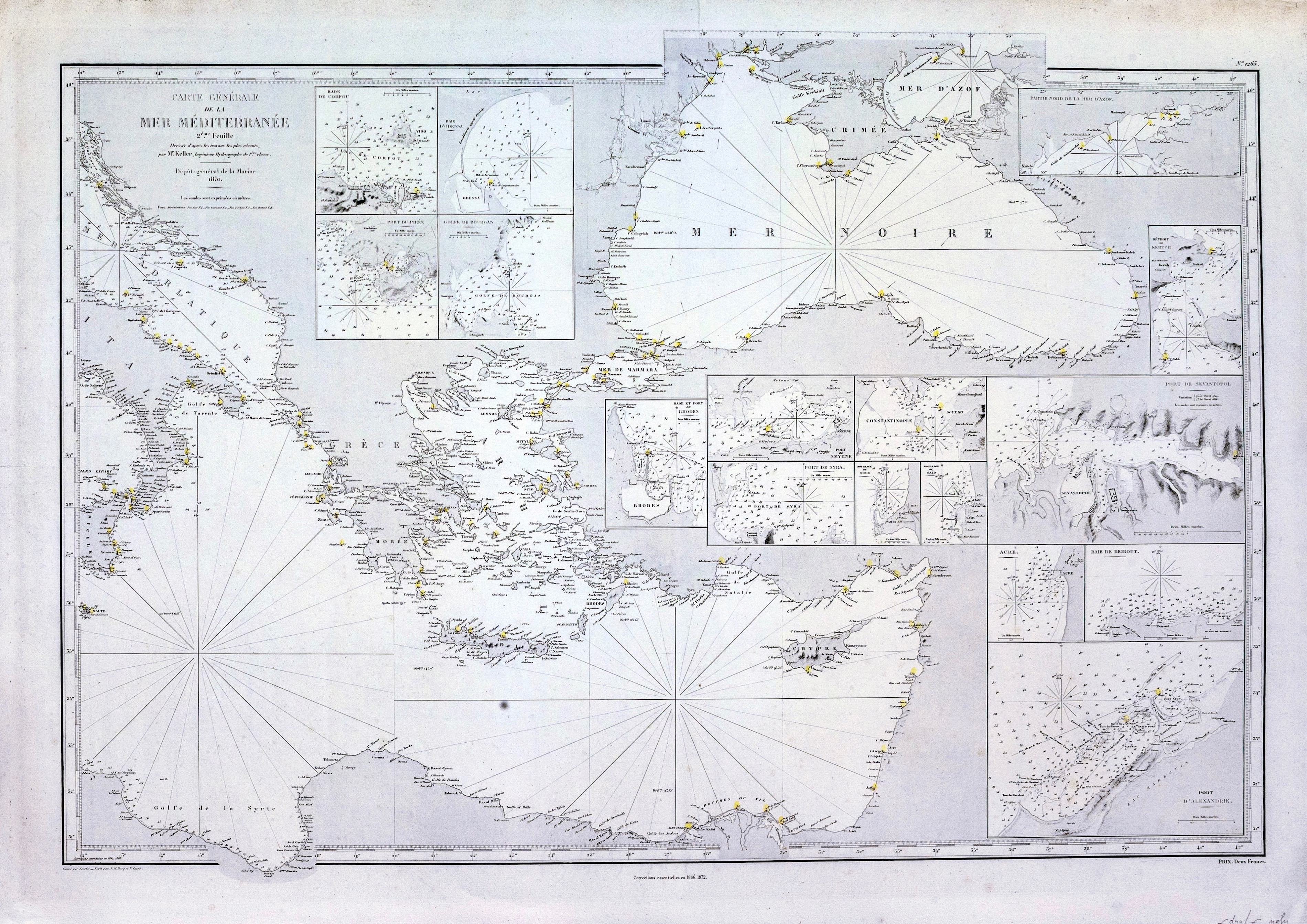Carte générale de la mer Méditerranée. 1ère feuille (con) Carte générale de la mer Mèditerranée. 2ème feuille.