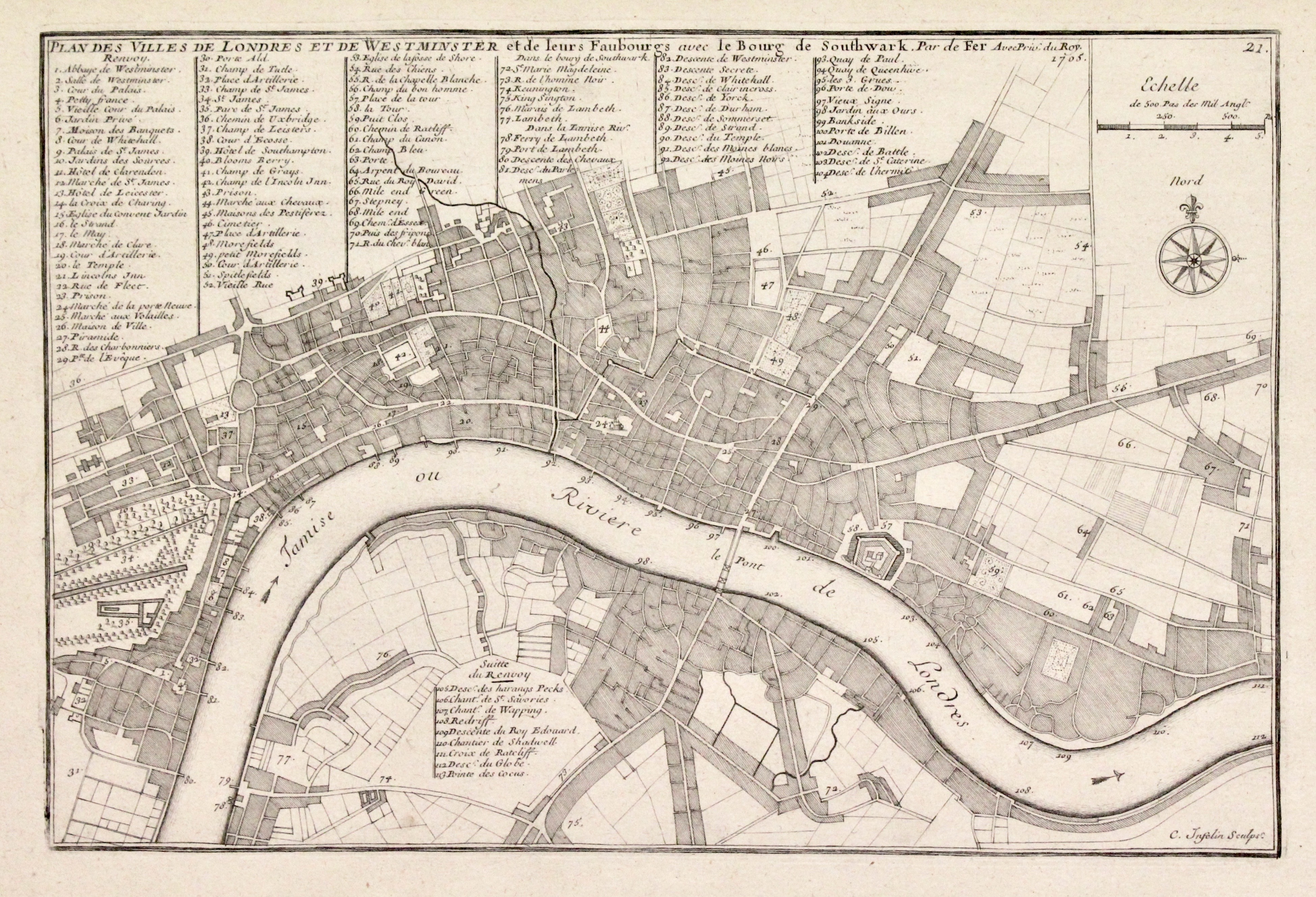 Plan des villes de Londres et de Westminster et de leurs Faubourgs avec le Bourg de Southwark