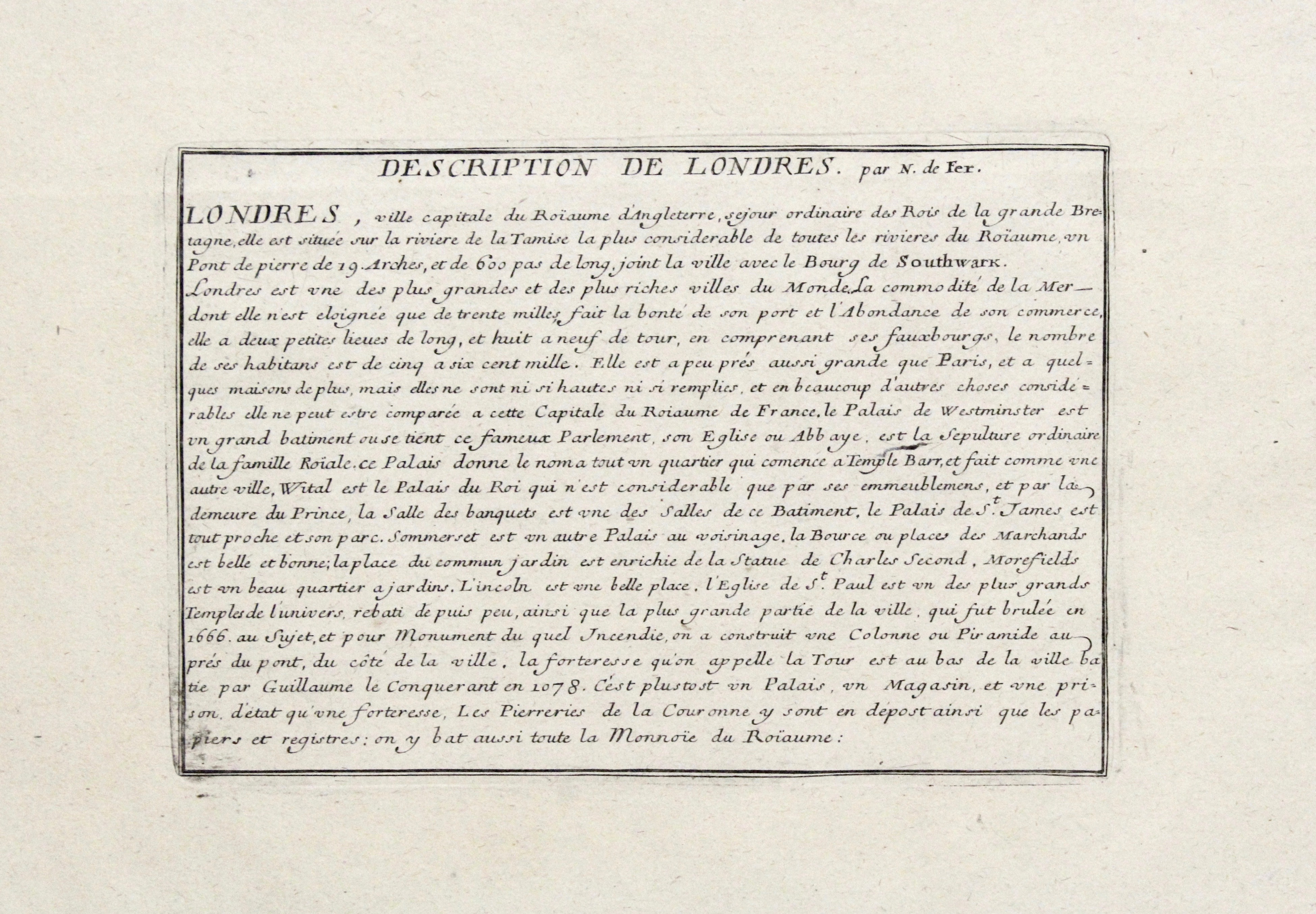 Copper engraving, mm 228x340. Engraved by C. Inselin. From “Atlas curieux”. Nice example of De Fer's plan of London