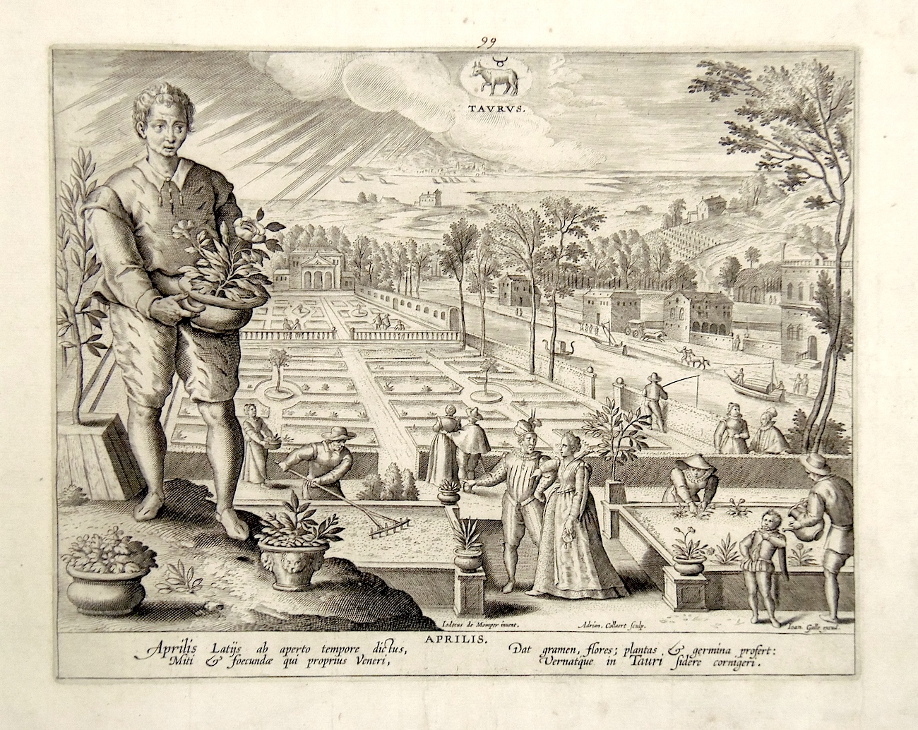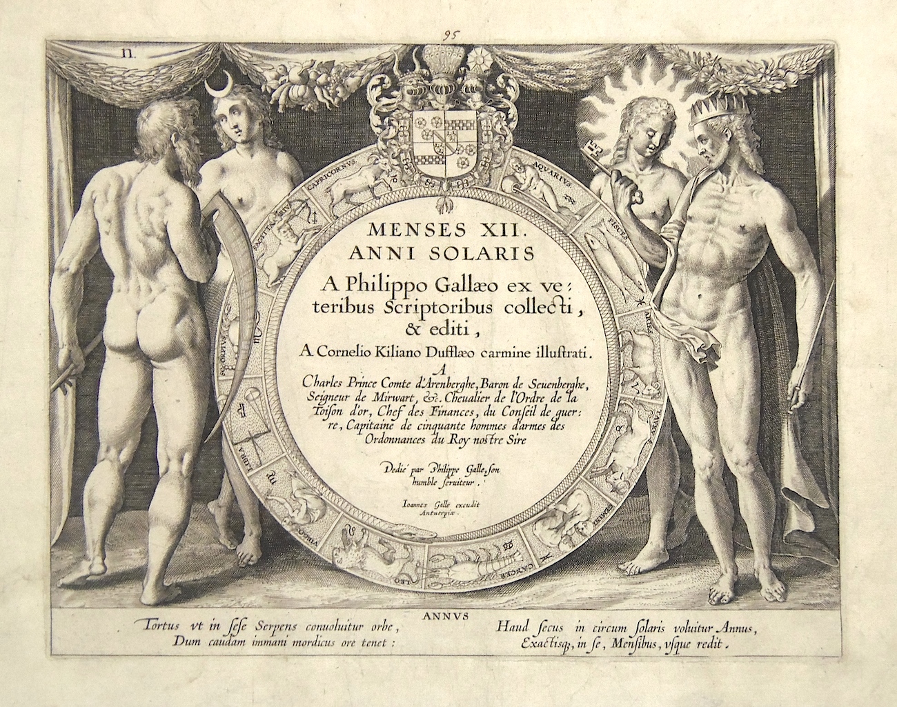 Menses XII. Anni solaris a Philippo Gallaeo ex veteribus Scriptoribus collecti, & editi, a Cornelio Kiliano Dufflaeo carmine illustrati. Ioannes Galle excudit. Antverpiae.