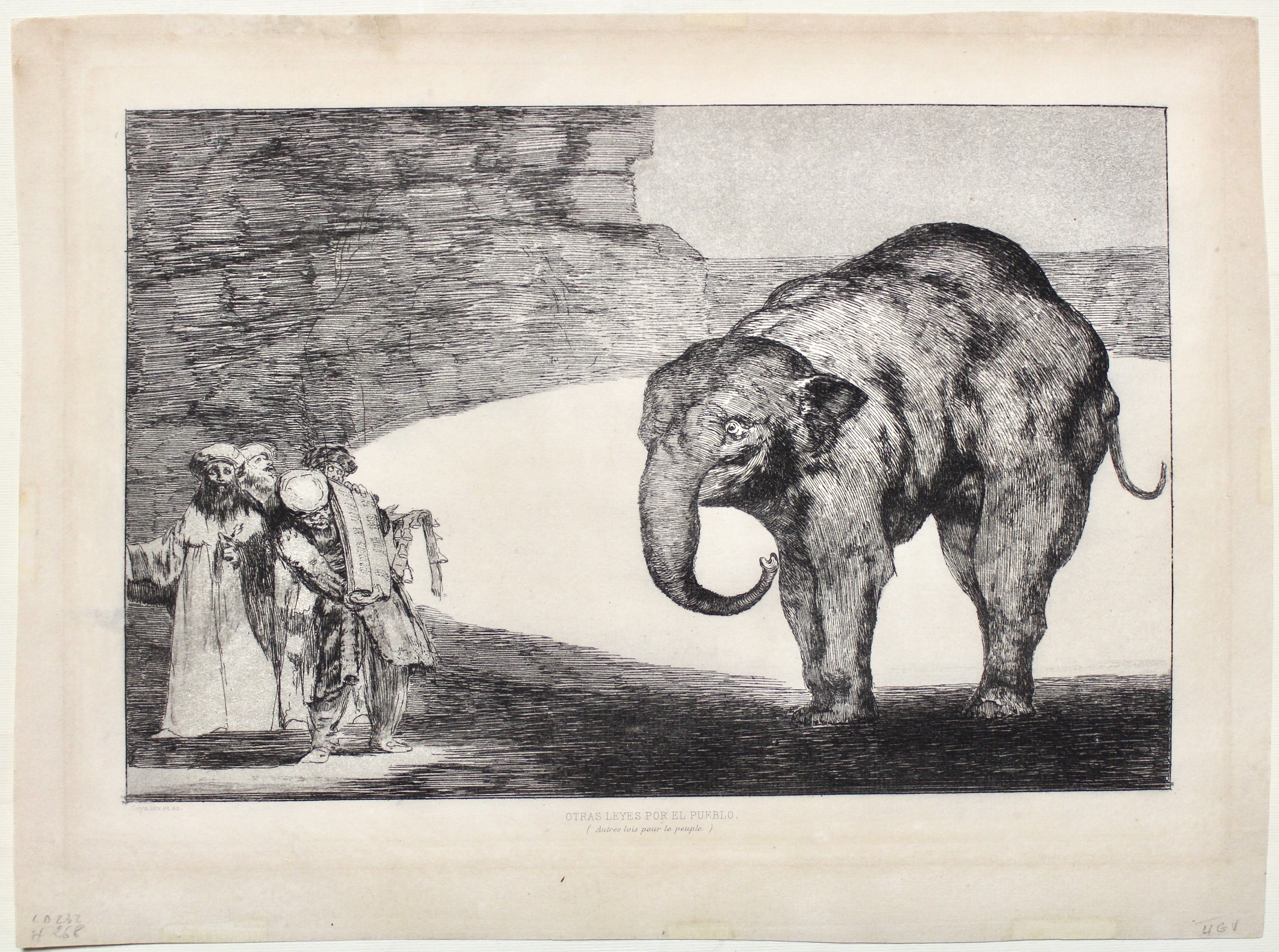Acquaforte, acquatinta e puntasecca. Mm 215x325. Stato unico. Tratta dalla serie addizionale di quattro tavole di "Los proverbios", pubblicata per la prima volta nella rivista "L'art" nel 1877 a Parigi da Lienard. Bella impressione, molto ben conservata, foglio un po' ingiallito con lieve traccia di passe-partout al margine, che presenta anche qualche piccolo difetto. Harris 267.