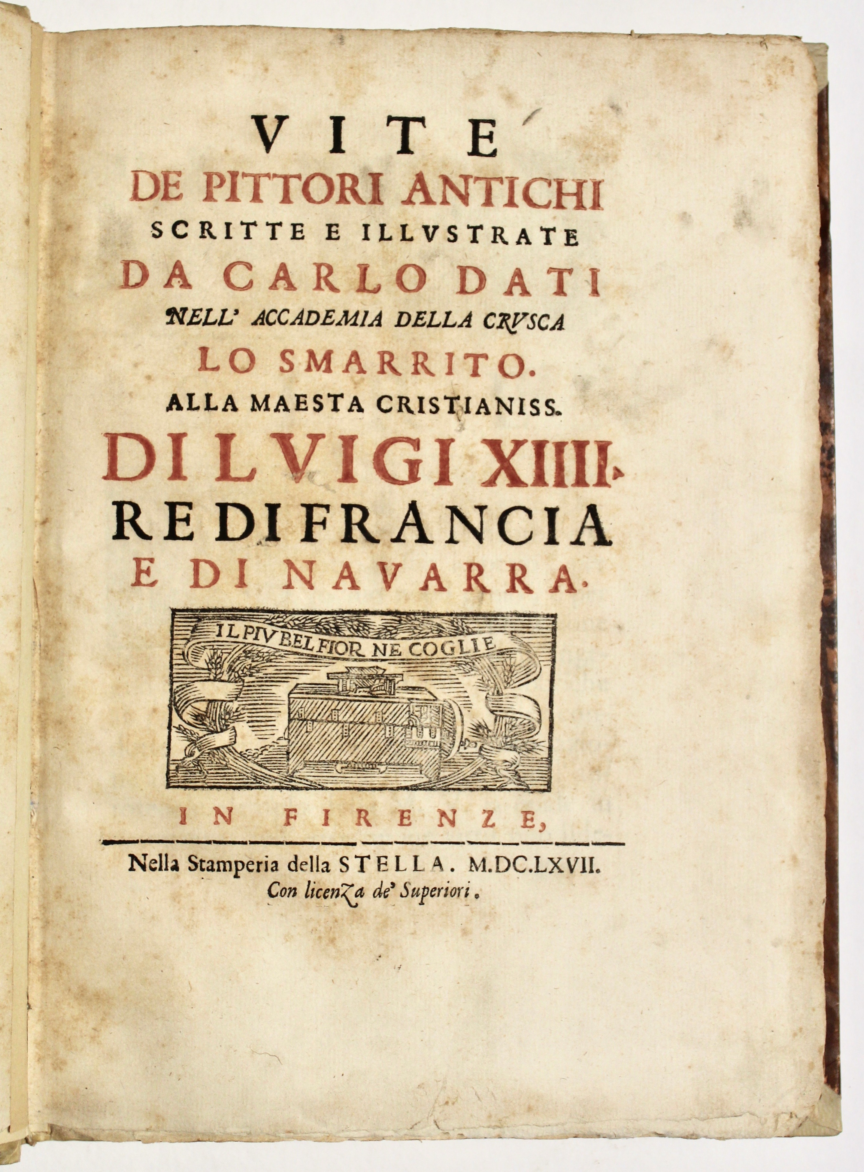 Vite de pittori antichi scritte e illustrate da Carlo Dati nell’accademia della Crusca Lo Smarrito.