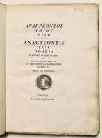 ANACREONTE. Teiou mele praefixo commentario quo poetae genus traditur et biblioteca anacreonteia Data 1791 Prezzo 1.300,00 €