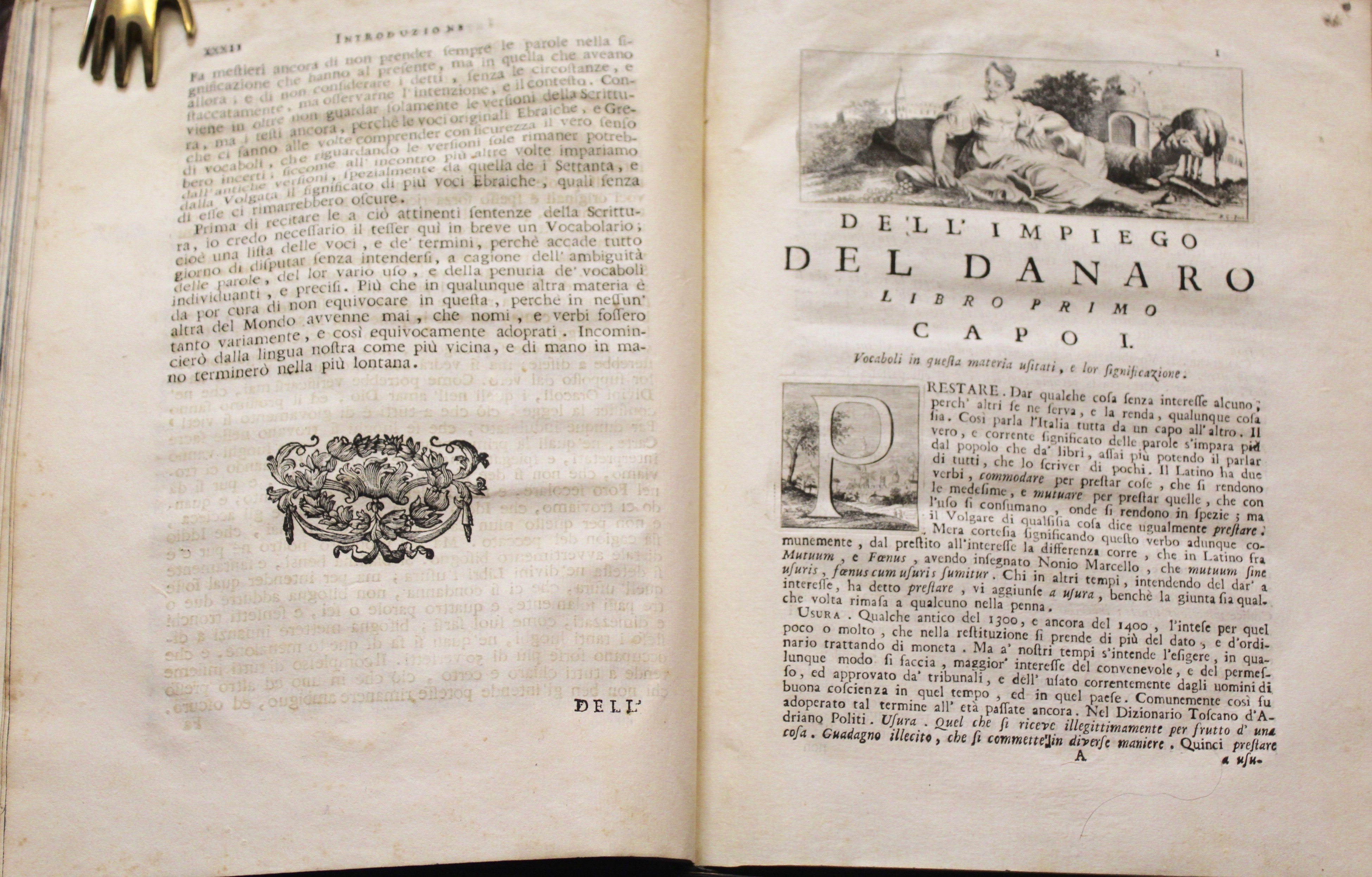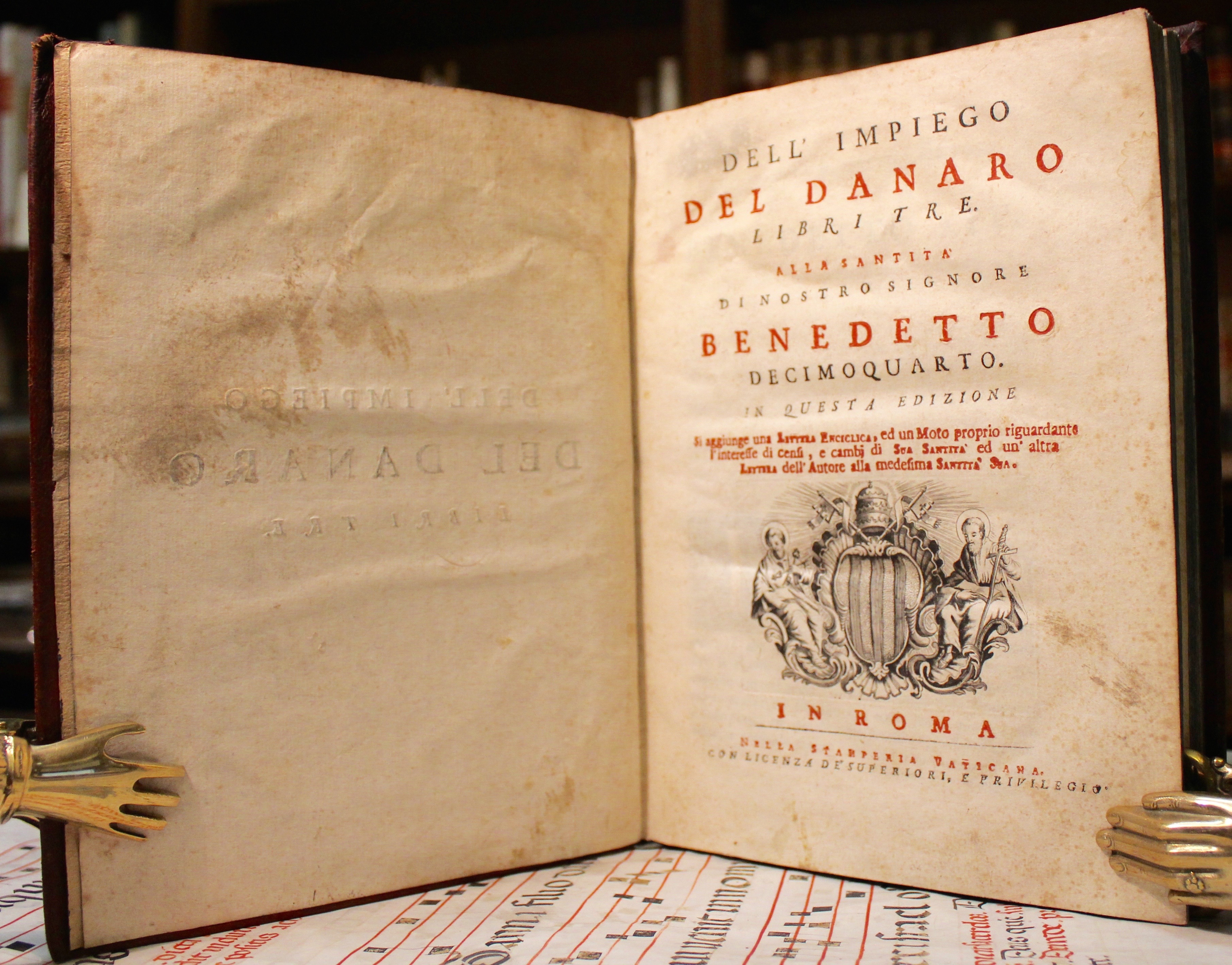 Dell'impiego del danaro libri tre. Alla Santità di nostro Signore Papa Benedetto decimoquarto.