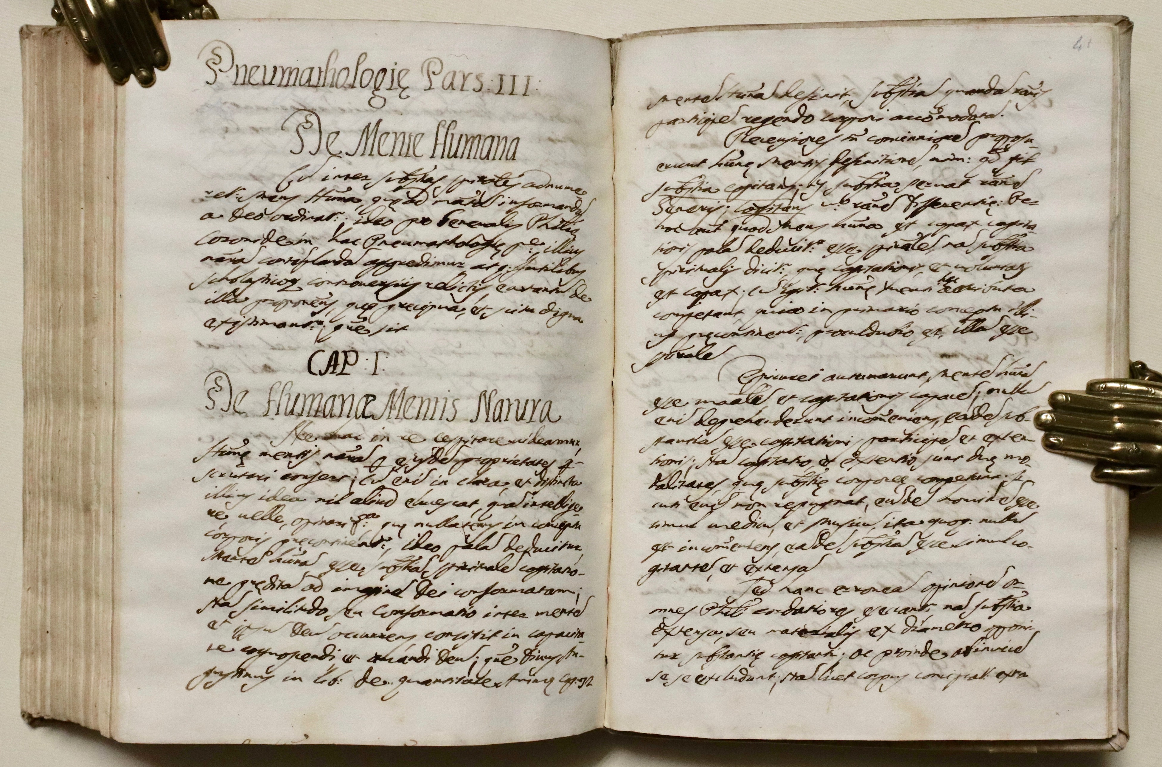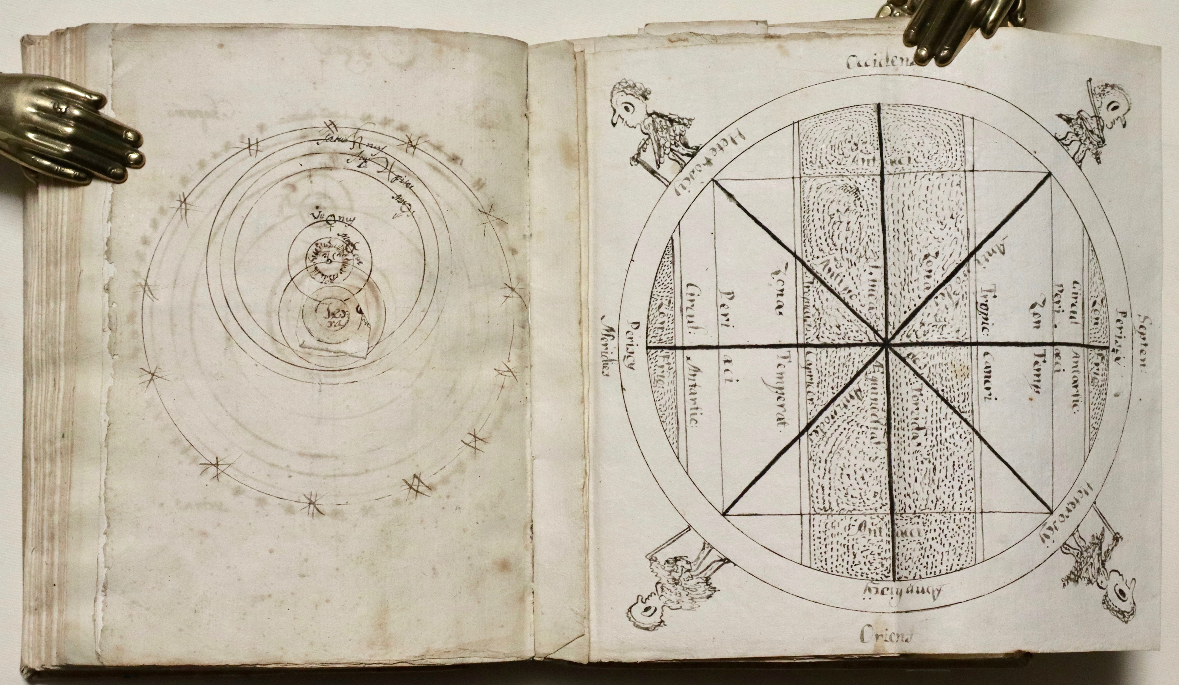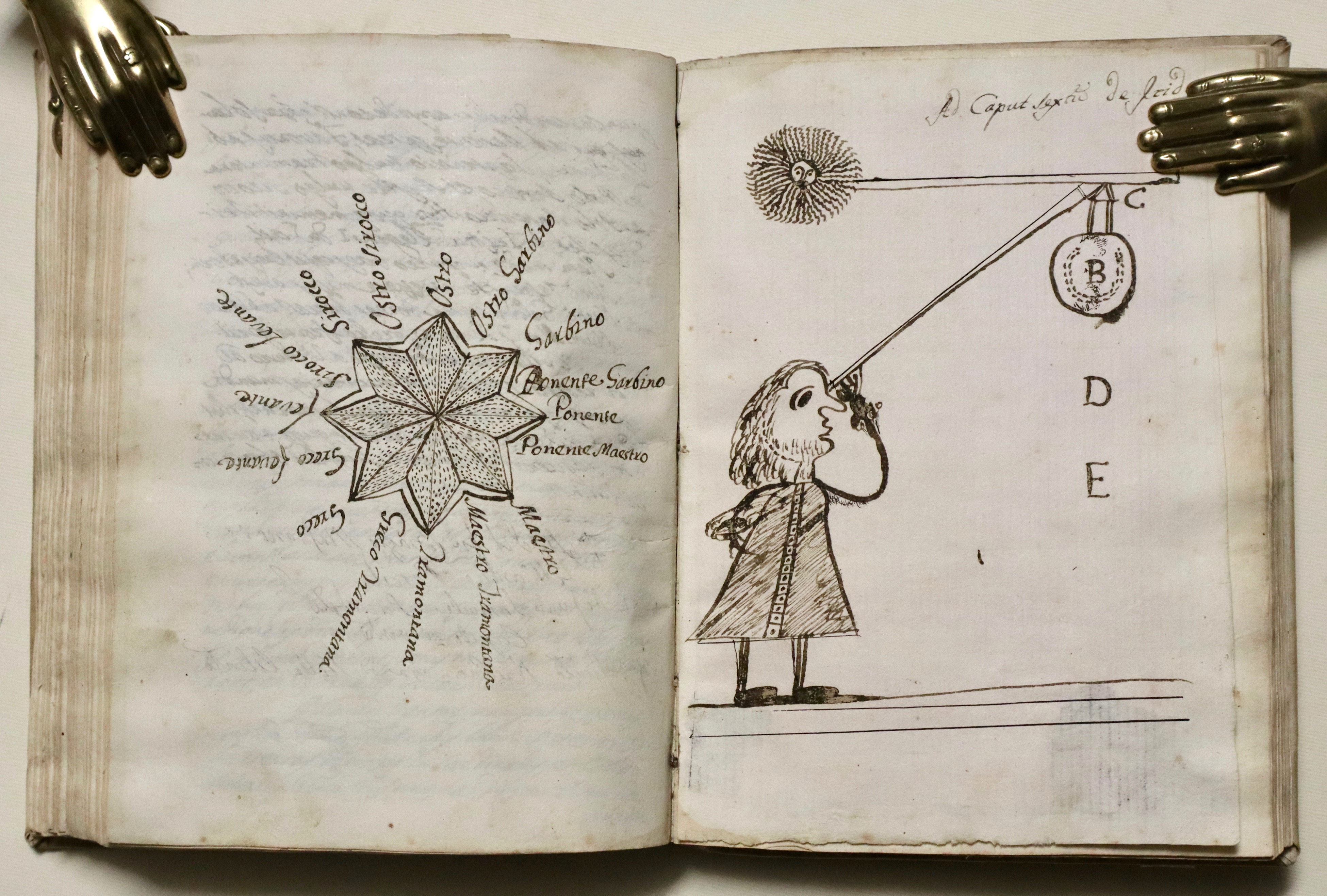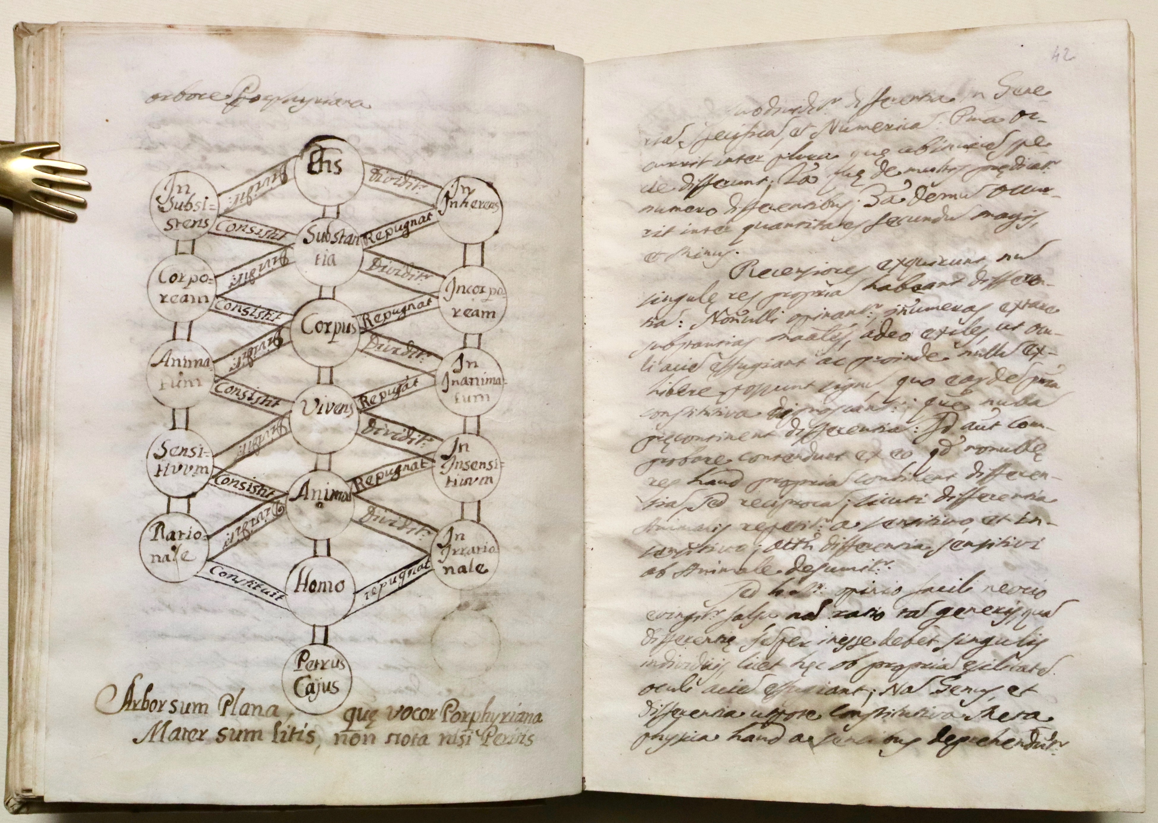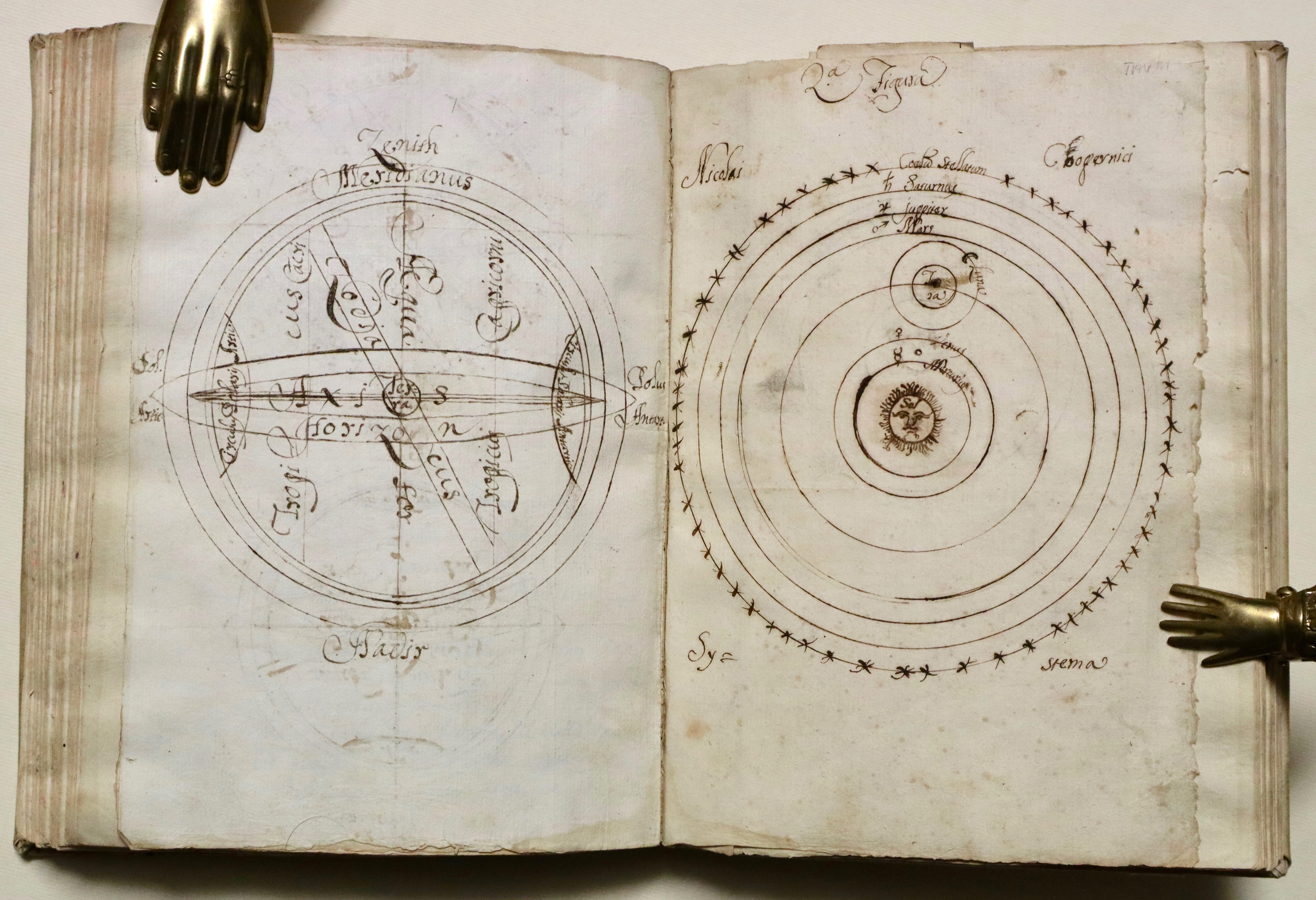 In 8°(mm 210x150). Due parti così suddivise: carte non numerate 231 per la prima parte, comprese 2 carte bianche e 9 tavole fuori testo con disegni astronomici (di cui 5 tavole ripiegate), diagrammi e sistemi cosmogonici ed altri riferimenti astronomici oltre a molti altri disegni nel testo eseguiti a inchiostro bruno fra cui una rosa dei venti; nella seconda parte, titolata Metaphisice seu generalis Philosophie prefatio 2 carte bianche, 51 carte n.n., 1 bianca con note manoscritte al verso. Testo manoscritto latino su carta vergellata a inchiostro bruno con marca d’acqua. Pergamena flessibile di fine ‘700, titolo manoscritto al dorso; il titolo si riferisce al vasto e sistematico corpo del pensiero Aristotelico, riprende nei vari libri e capitoli i saperi di quell’opera enciclopedica, che abbraccia logica, metafisica e il problema dell'universale, fisica e il modello geocentrico, etica, ricerca del fine, politica e scienza naturale, mirando a comprendere la razionalità dell’intera realtà attraverso l’osservazione e la classificazione, creando un sistema unificato del sapere umano. Tratta della logica, della natura delle idee, della loro verità e falsità, della specie e delle categorie aristoteliche, dei sillogismi sofistici e dell’arte del pensiero e del metodo filosofico, analitico e sintetico. La seconda parte, Metaphisice seu generalis Philosophie prefatio, tratta invece la fisica, ed è diviso in sei libri, fra cui l’interessante libro secondo sulla cosmografia che comprende la descrizione dei sistemi cosmogonici arricchiti di belle tavole di carattere astronomico. Il libro terzo descrive la terra e i suoi elementi, magnetismo, meteoriti, nubi e nebulose, tempeste e fulmini. Nel capitoletto successivo tratta degli aloni della corona solare; il libro cinque tratta degli animali, delle piante, della vita, dell’uomo, dell’unione della mente e del corpo, della sede della mente, invece dei moti e dei cinque sensi, dell’anima e passioni; tratta della dottrina relativa ai caratteri universali dell’ente, corrispondente alla ‘prima filosofia’ del più maturo Aristotele, detta poi ‘metafisica’: che è tradizionalmente considerata il fondamento di ogni sistema oggettivistico. Fascinoso oggetto, che presenta lievi fioriture saltuarie a poche pagine, alone dalla carta 64 fino alla 80, alone alla sguardia inf. Nota manoscritta a inchiostro bruno ai tagli con il nome della famiglia MASSANOVA allora proprietaria del volume, ripetuto più volte, così come al foglio di guardia iniziale dove al recto si riporta: Copia antica filosofia astronomia l’anno 500. Almanacco perpetuo scritto dall’antichi scienziati astronomi filosofi la quale posteriore à quest’opera vi sono dell’Almenachi in stampa. Con l’autore di Rutilio Ben Casa. Una piccola mancanza alla pergamena del piatto post. in basso. Al verso della carta 182 vi è un foglio rosa scritto dagli eredi Massanova, senza data ma del 1813 presumibilmente