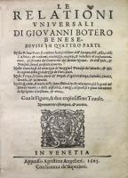 BOTERO GIOVANNI Le Relationi universali di Giovanni Botero Benese divise in quattro parti… con le Data 1605 Prezzo 2.200,00 €