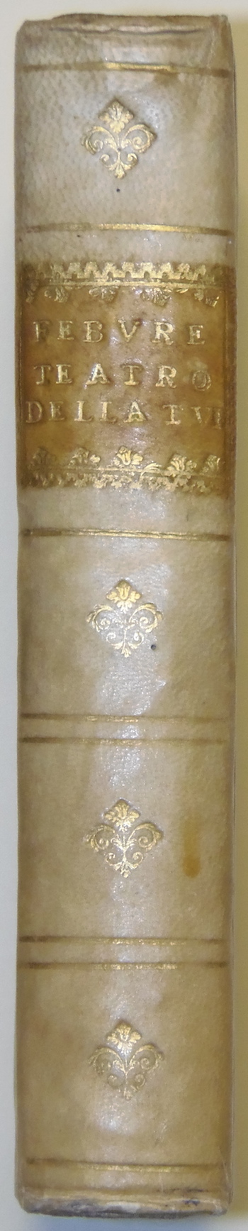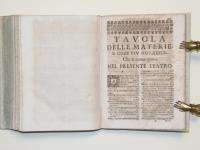 In 4°(mm 220x165); carte n.n. 9 su 10; pagg. 530. Grande vignetta in rame al frontespizio con le armi di Innocenzo XI dedicatario dell’opera; capolettera, testatine in xilografia. Mezza pergamena del XVIII secolo, dorso con tassello e titolo in oro, fregi dorati a piccoli ferri; tagli a spruzzo. Prima edizione.
