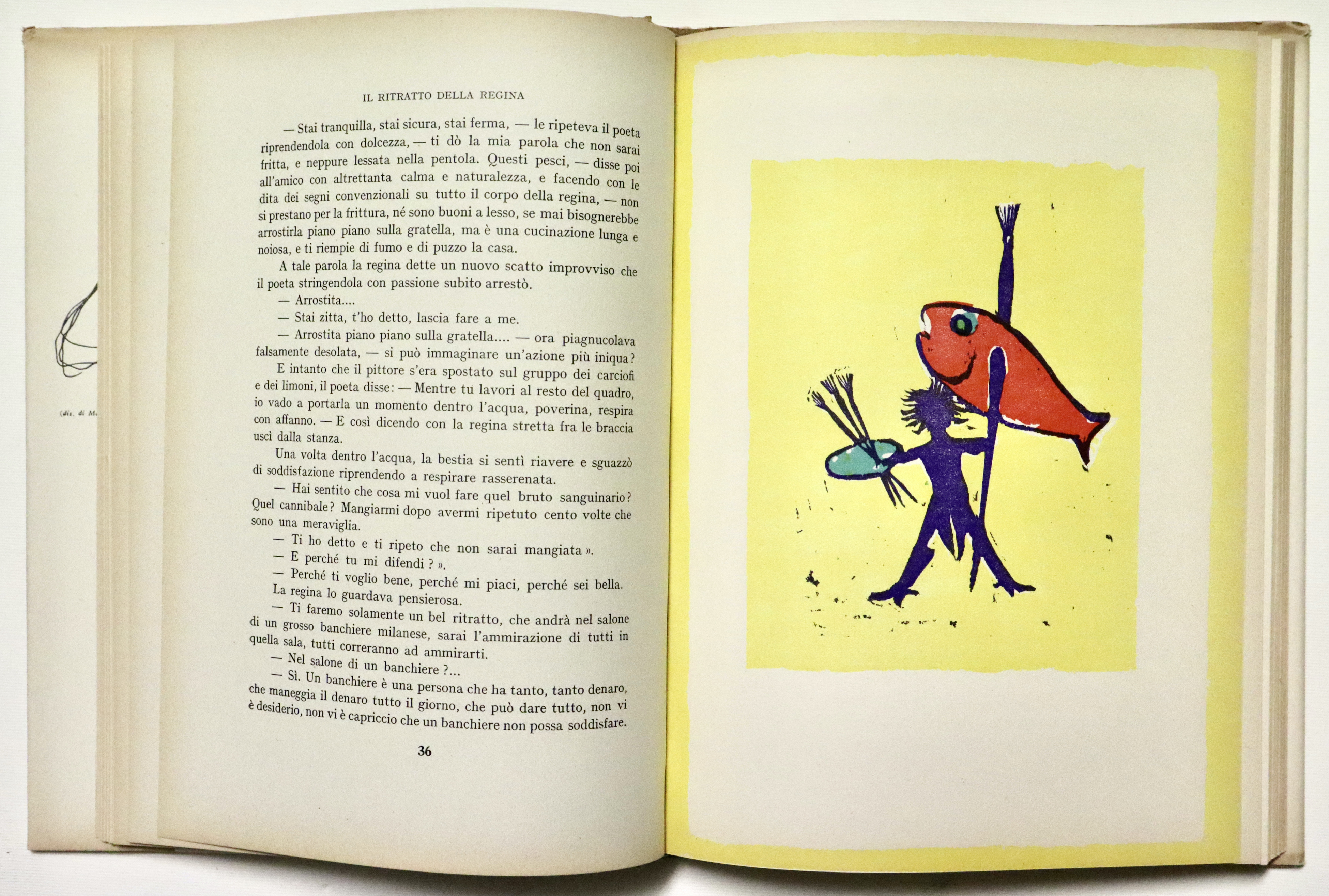 Brossura editoriale a stampa con titolo al dorso, con illustrazioni ai piatti e sovraccoperta figurata sempre a splendidi colori. Mezza tela grigia con titolo in rosso, piatti policromi illustrati, sovracoperta policroma figurata. Prima edizione. Ottimo esemplare con lievi difetti alla sovracoperta.