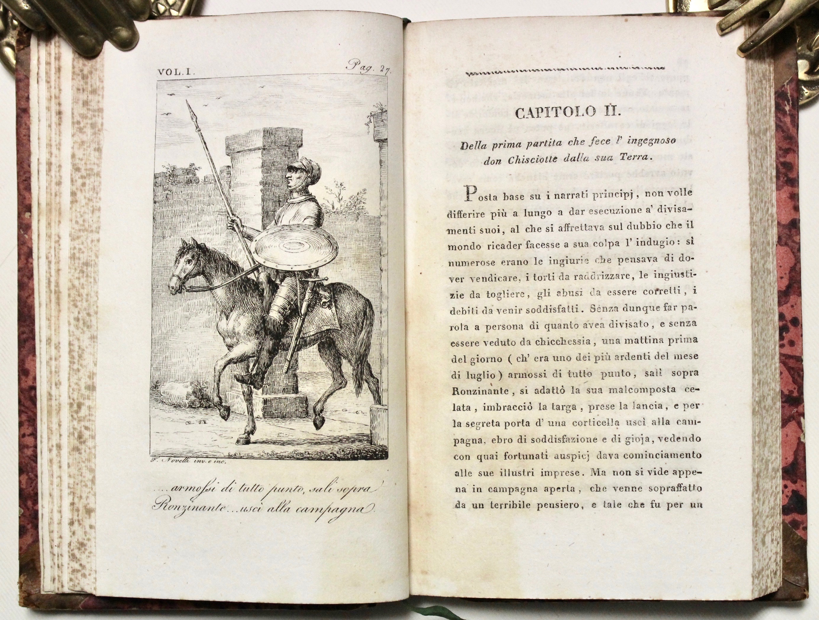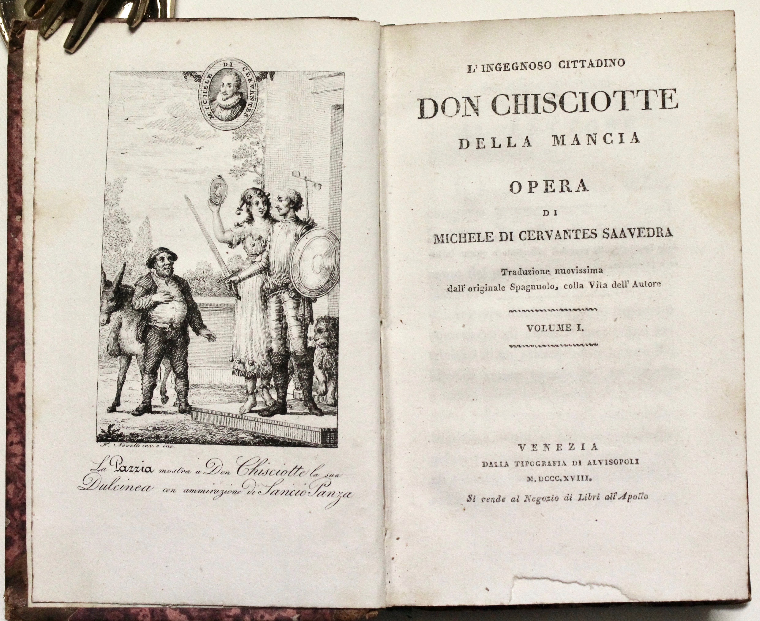 Rara importante seconda traduzione italiana del capolavoro del Cervantes, prima edizione nella traduzione di Bartolomeo Gamba. Opera celebre ed affermata, successivamente negli anni, riadattata e ristampata.