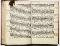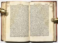 Rara edizione. Buon esemplare. Alone grigio-bruno all’angolo sup. delle ultime carte, a partire dalla CLII circa (numerata manoscritta ad inchiostro bruno 165). Lieve alone a poche pagg. al margine inferiore all’inizio del tomo, chde riprende verso la fine più evidente. Antiche annotazioni di studio manoscritte al margine e sottolineature a inchiostro bruno. Varie note manoscritte alla seconda carta bianca (carta iniziale VIII non numerata).