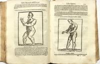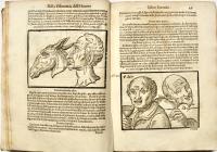 In 4°(mm 220x155); carte non num. 8, carte num. 222, compreso l’occhietto; pagg. 64; 32; pagg. (12), 147. Frontespizi con grande vignetta in rame, capilettera istoriati entro elementi fitomorfi, testatine e finalini silografici, ritratto a tutta pagina del Cardinale d’Este a cui l’opera è dedicata, ritratto del Dalla Porta, incisi in legno. Centinaia di affascinanti incisioni sempre in legno nel testo, molte a piena pag. Piena pergamena semirigida coeva, titolo manoscritto al dorso.
