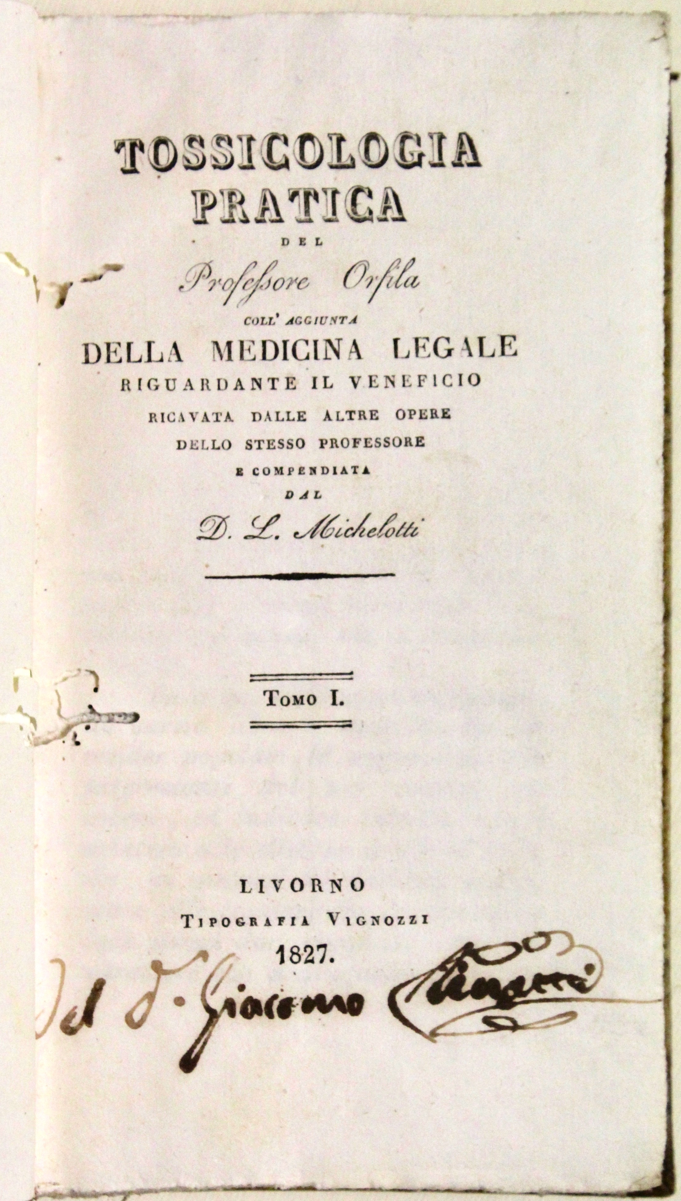 Tossicologia pratica. Coll’aggiunta della medicina legale riguardante il veneficio, ricavata dalle altre opere dello stesso Professore e compendiata dal D. Michelotti.