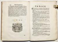 In 4° (mm 220x155); cc. nn. 4, pagg. 230, cc. nn. 4 di indice. Pergamena coeva con titolo in oro su tassello al dorso. Ottimo esemplare con qualche lieve arrossamento della carta.