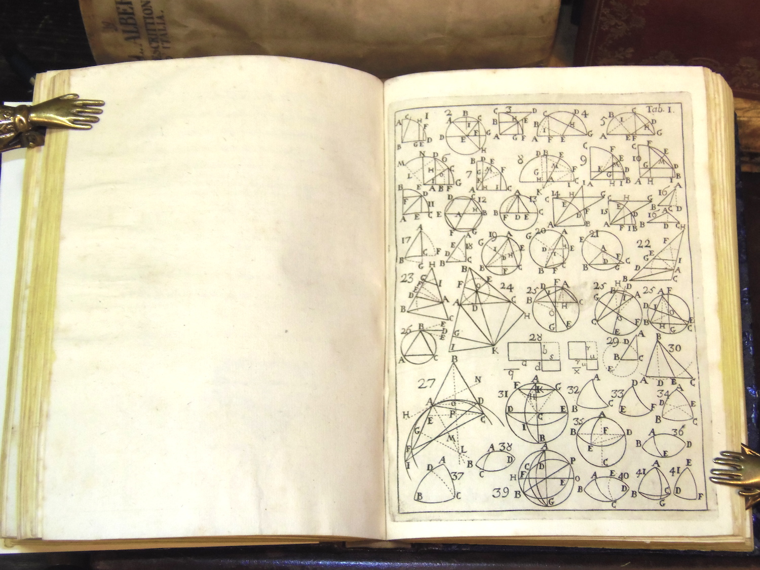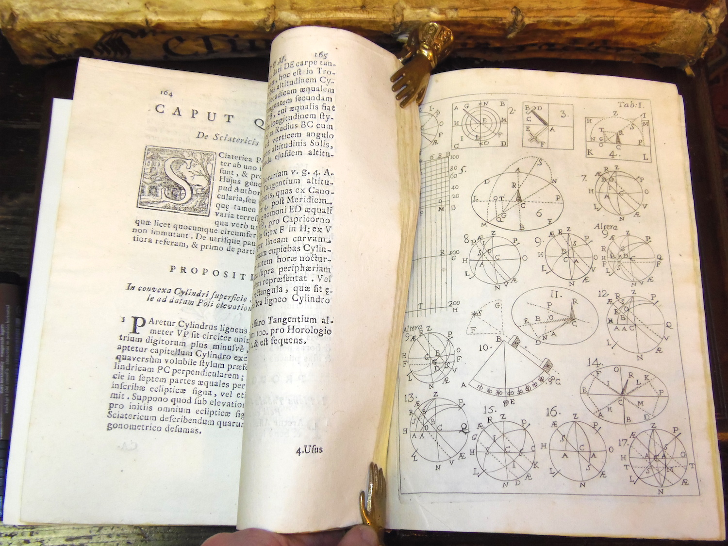 Rara prima edizione dell’Horographia, importante opera matematica in cui l’autore, in particolare nel settimo capitolo, tratta dei quadranti catrottici e diottrici, da cui si deduce la grande conoscenza dell’autore dell’ottica.