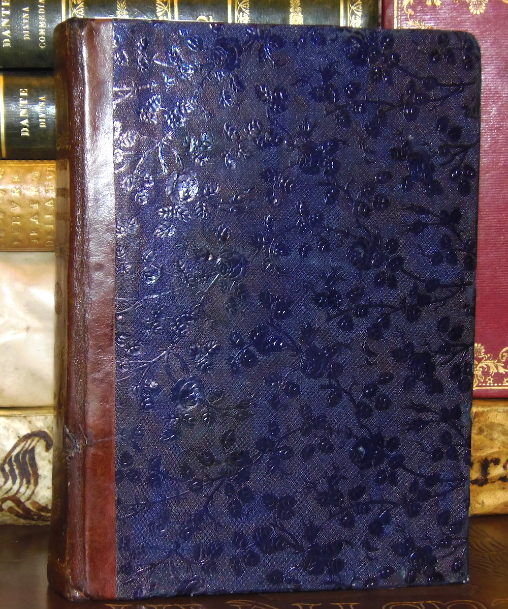 Due opere in un tomo. In 4°(210x160mm); pagg. VIII, 189, (3 bianche), con 4 tavv.; pagg. (8), 225, (3 bianche) con 5 tavv. Capolettera entro grandi vignette istoriate e finalini incisi in legno. Mezza pelle di fine settecento con piatti blu in tela decorata con fiori impressi a secco; titolo e fregi al dorso in oro, tagli gialli.