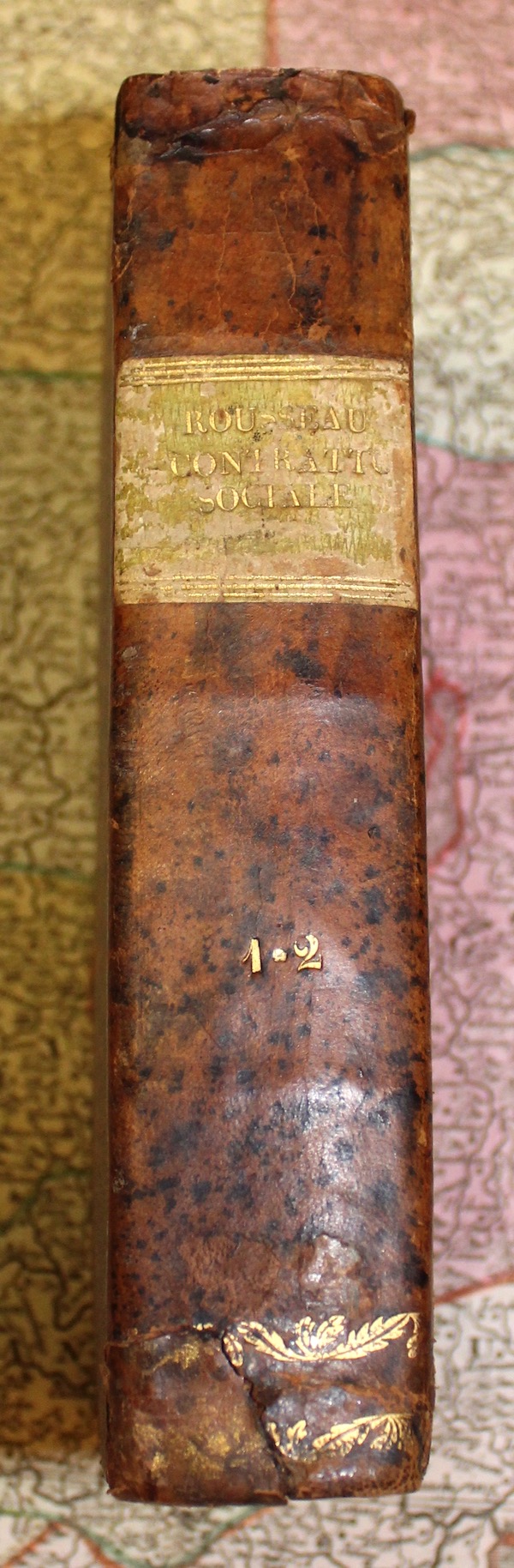 Rara prima edizione italiana a cui seguì una nuova versione l’anno successivo a Genova. L’opera, pubblicata nel 1762, è divisa in quattro libri e rappresenta uno dei caposaldi del pensiero politico-illuministico francese in cui Rousseau afferma che ogni governo dipende dal mandato del popolo.