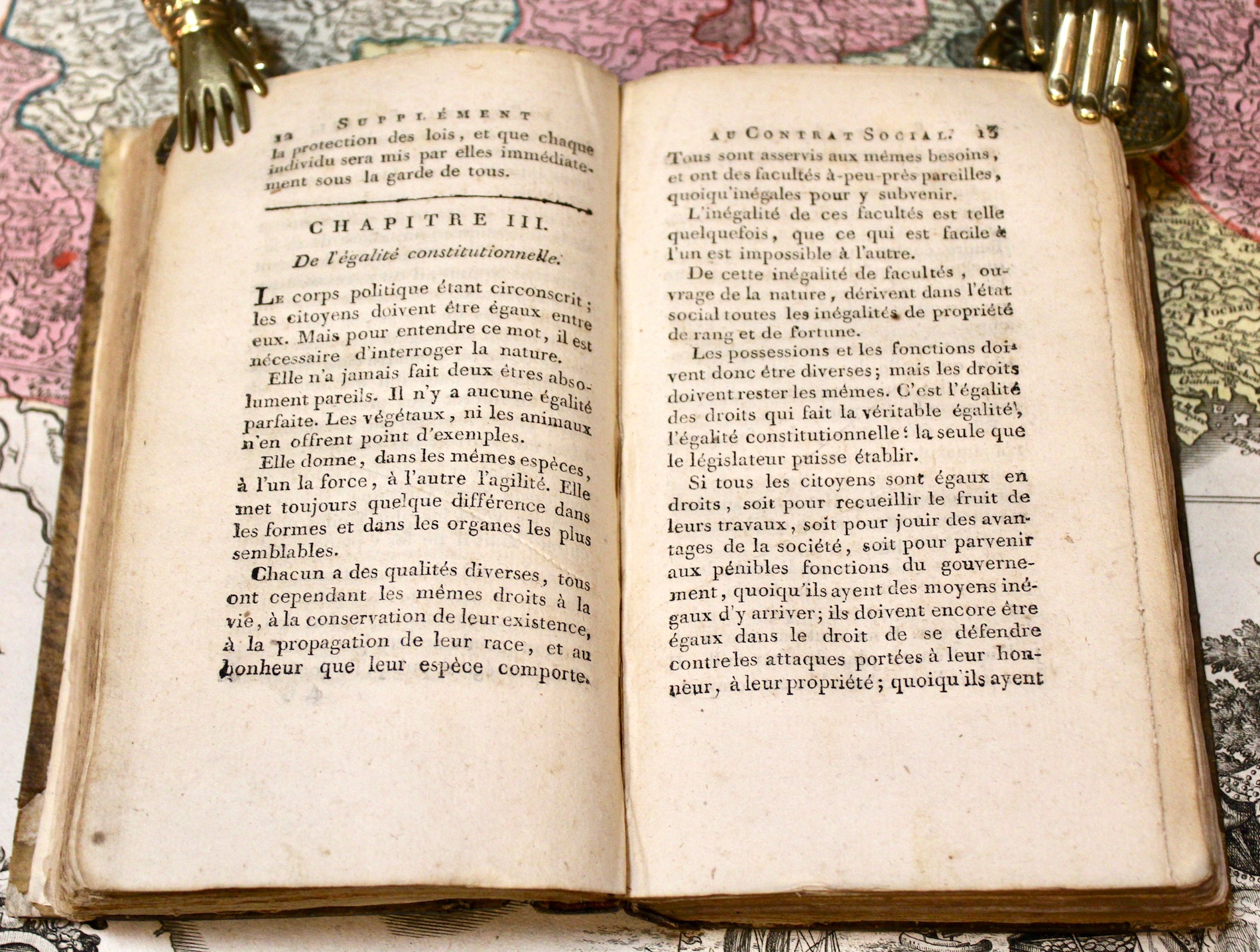 Del contratto sociale o principj del diritto politico...tradotto dal francese da G. Mennini. (Insieme a:) Supplément au contrat social applicable particulièrement aux grand nations. (Parigi, s.d.)