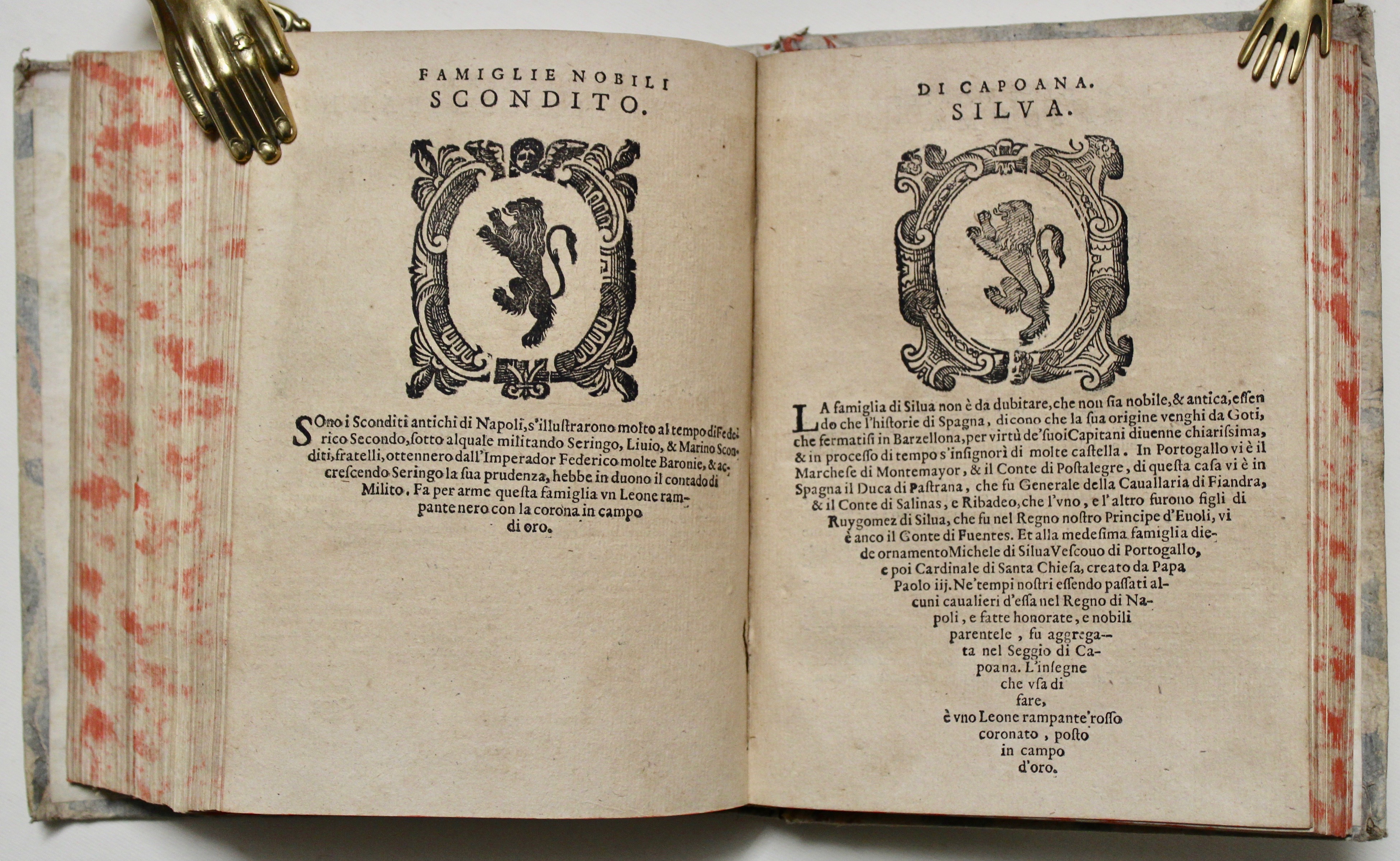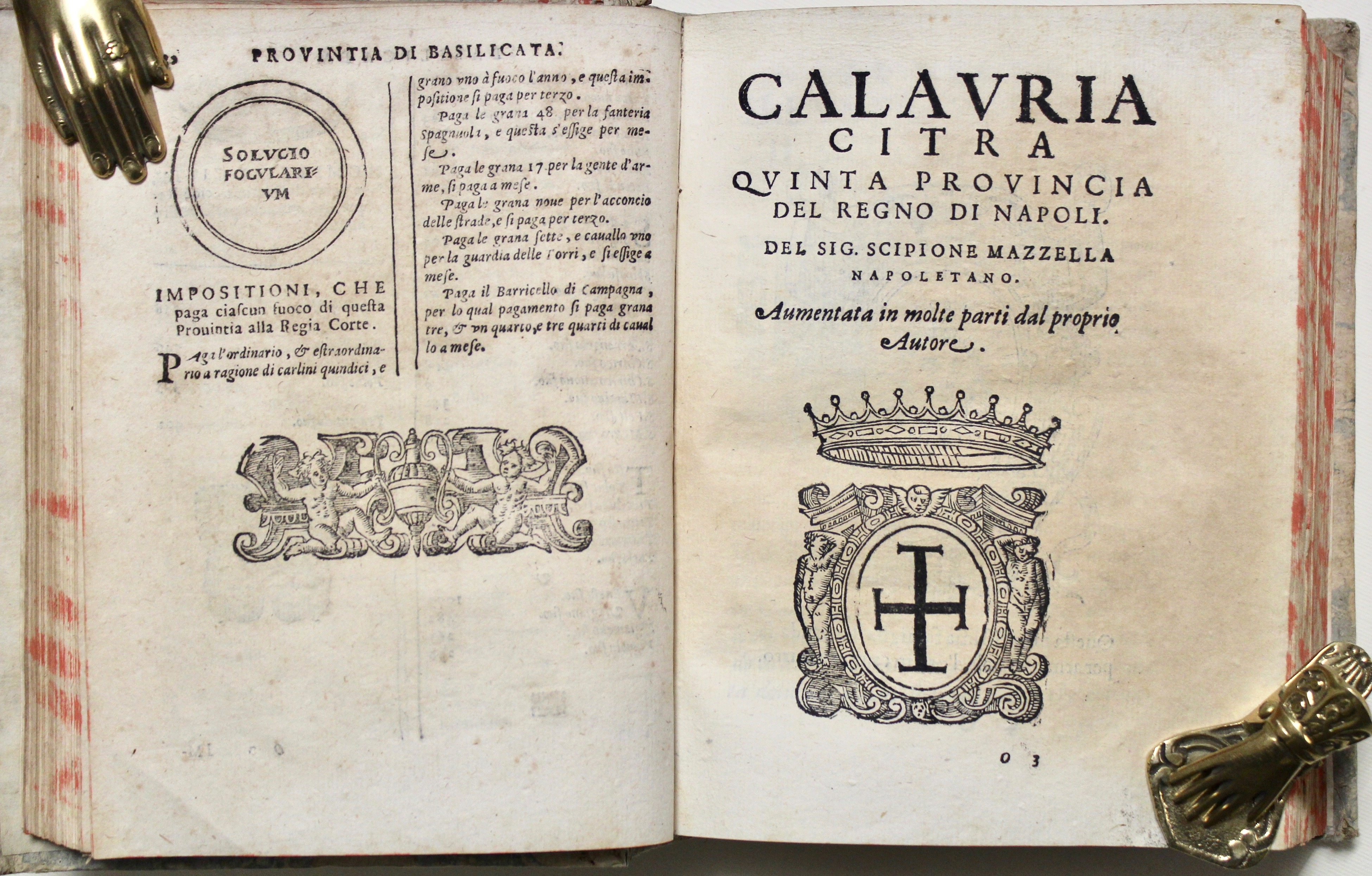 Lozzi pag. 468, n. 3011: ”Bello e assai raro, con molti stemmi di famiglie ben incise”; Manzi, Annali della tipografia Stigliola, 28; Palau nº 159231; Bocca: Manca alla Platneriana.