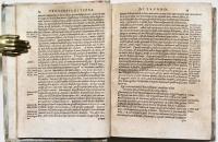 Bell’esemplare con i primi due quaderni bruniti da pag. 1 a 32. Pag 659 con mancanza al marg. est. con lieve perdita di testo. Sottili camminamenti marginali di tarlo da 449 a 456.
