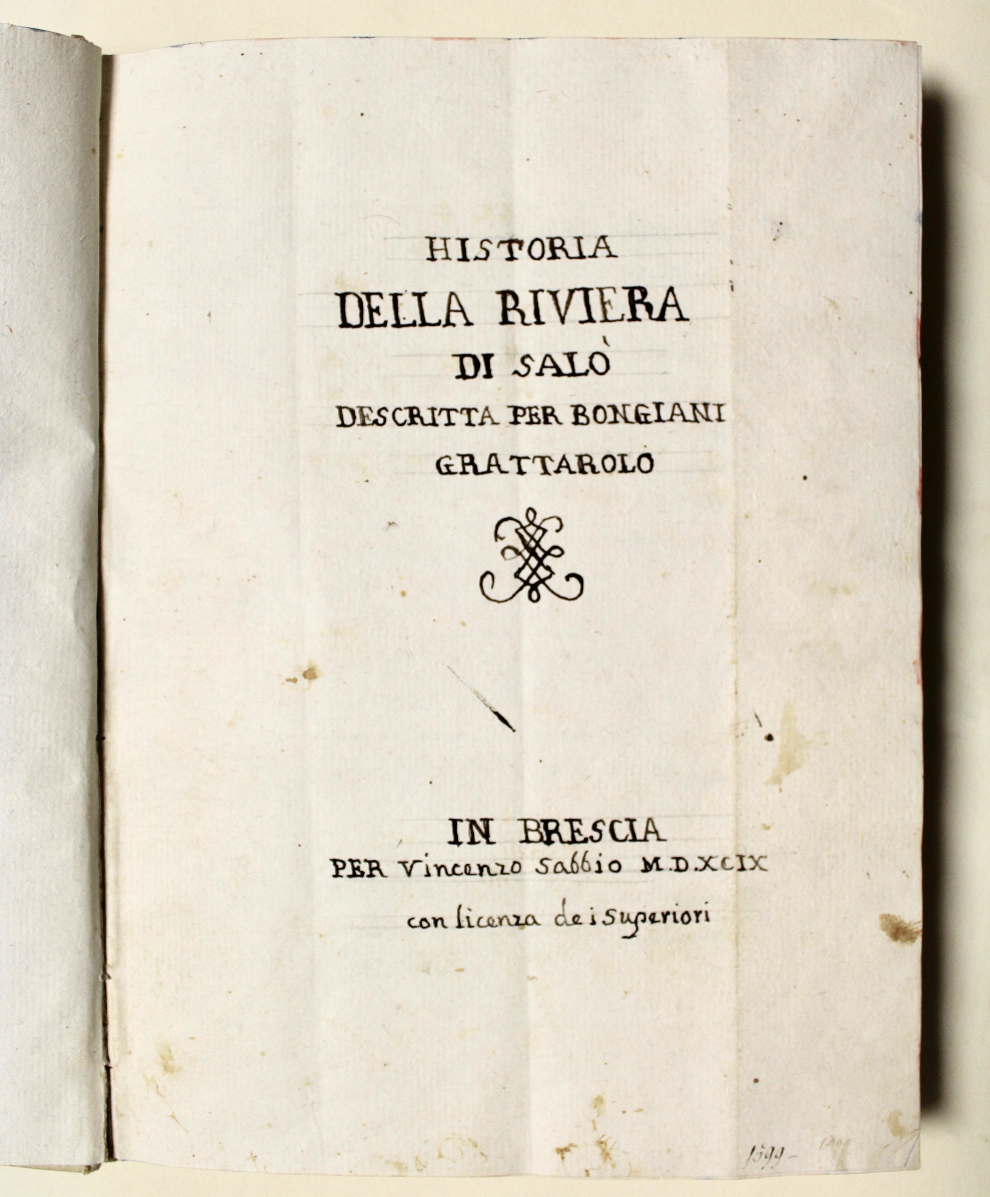 Historia della Riviera di Salò descritta per Bongiani Grattarolo (con) De nobilitate Brixiae...Venezia, 1792.