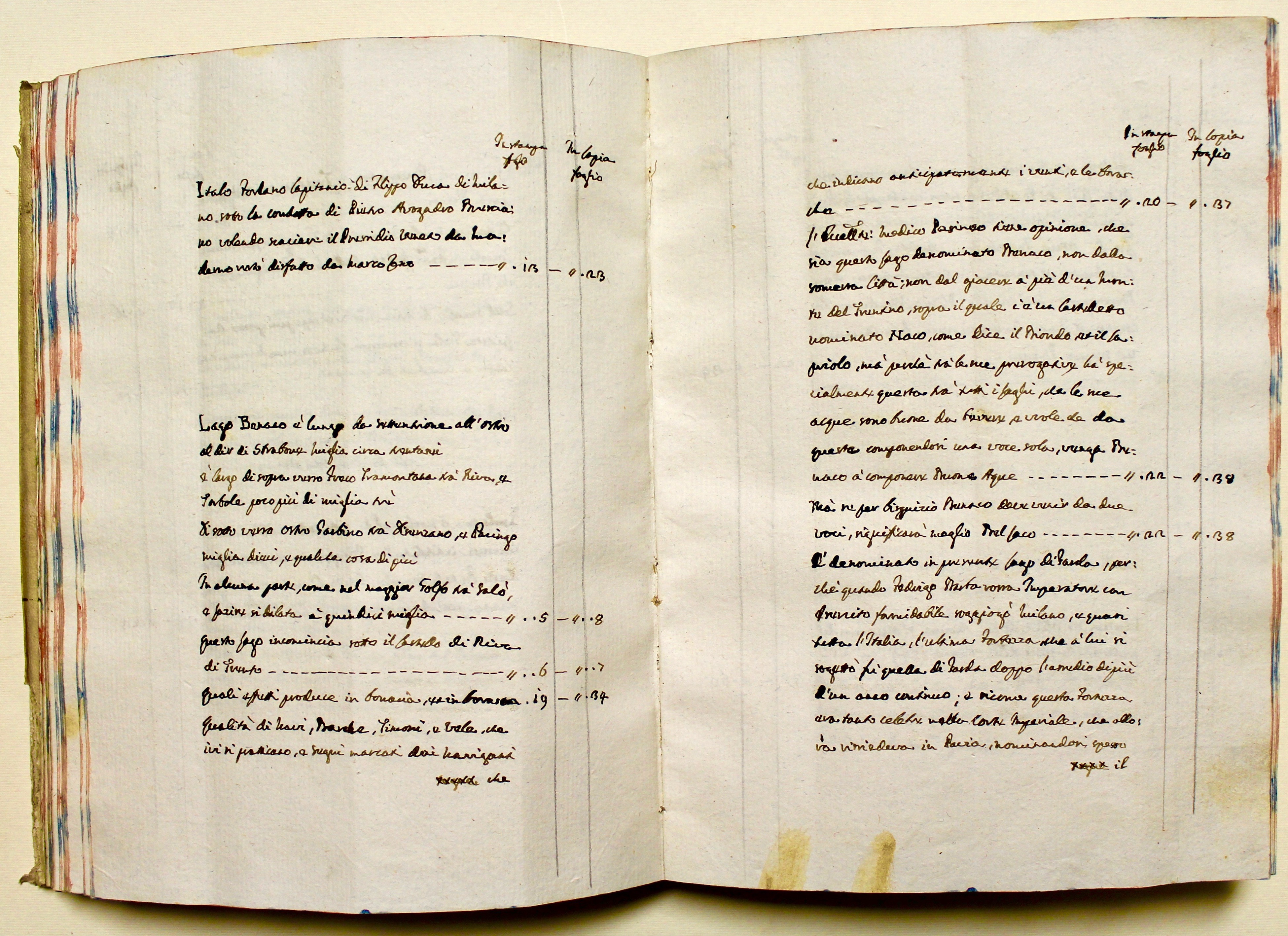 Manoscritto in 4° (mm 290z210); pagg. (4), 192, (79); (51). Copia settecentesca delle suddette due opere, eseguite da Filippo Marai notaio, che nella prefazione spiega di aver dovuto copiare l'opera del Grattarolo a causa della impossibilità di reperirne esemplari e di aver aggiunto un interessante indice delle cose notabili, mancante nell'opera a stampa. Eseguito con chiara grafia ad inchiostro su 28 righe. Pergamena coeva, tagli decorati coevi. Qualche mancanza e difetto alla pergamena. Al verso della guardia finale vi è la nota "1816-Cesare Marai Pronipote dell'entroscritto notajo", mentre sulla sguardia iniziale a matita un'altra nota riporta "Viola Giuseppe di Torri Anno Domini 1870 con Diogene Bocceli incontrò...31 luglio 1870" € 1.800 C8 Reg. 124 – 05GRATTAROLO BONGIANNI - PODAVINI DAVIDE