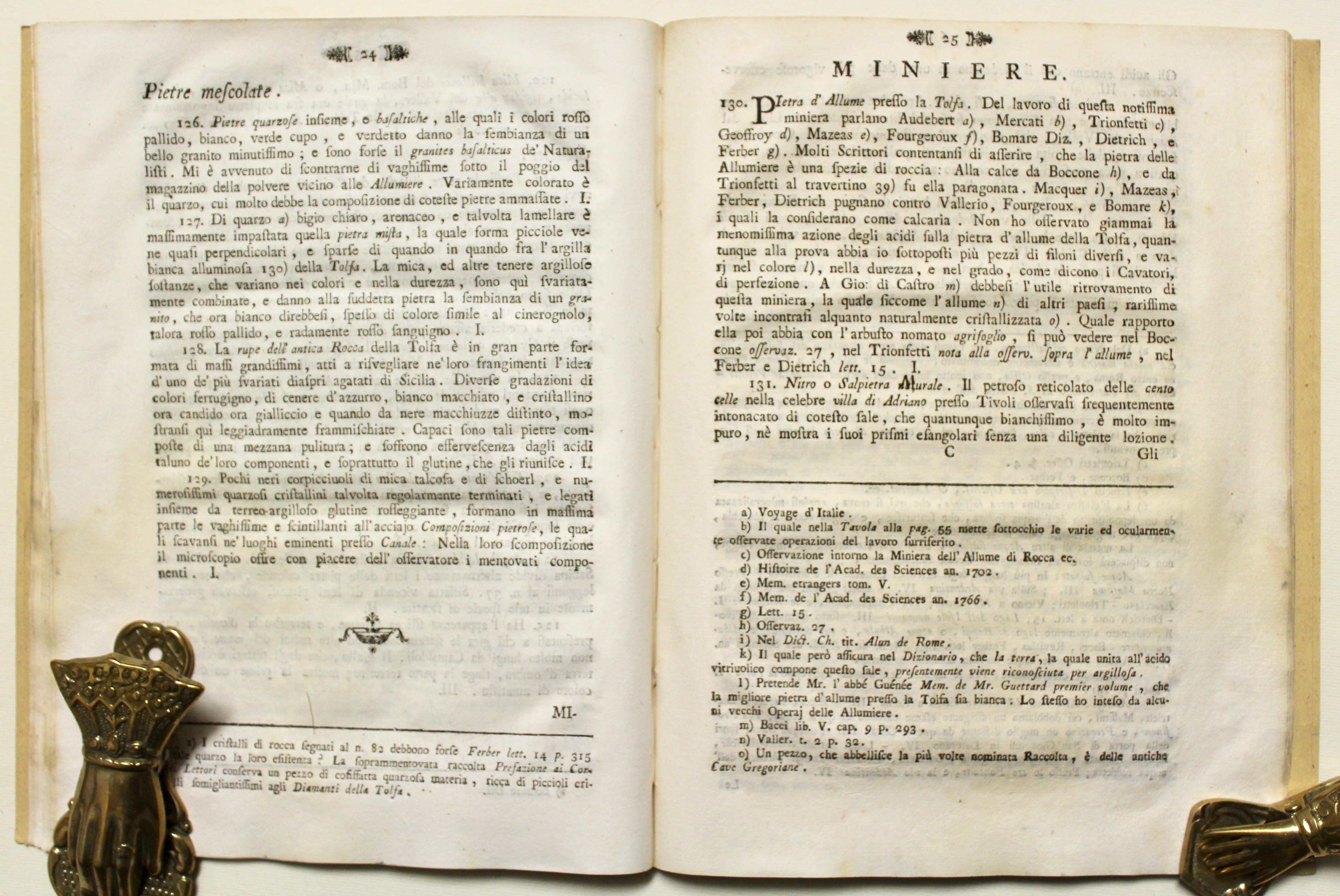 In 4° (mm 260x200), pagg. XII, 46, (4), 4 carte geogr. ripieg. f.t. Non comune opera che descrive, come dice il titolo, pietre, minerali, fossili, miniere del Lazio con relativa ubicazione dei ritrovamenti sulle carte corografiche dei viaggi storico-naturali fatti dall`autore per le province di Patrimonio, Sabina, Lazio, Marittima, Campagna e per l`Agro Romano. Cartoncino moderno rosa. Discreto esemplare con alone, margine sup. corto, strappo rest. al frontesp.