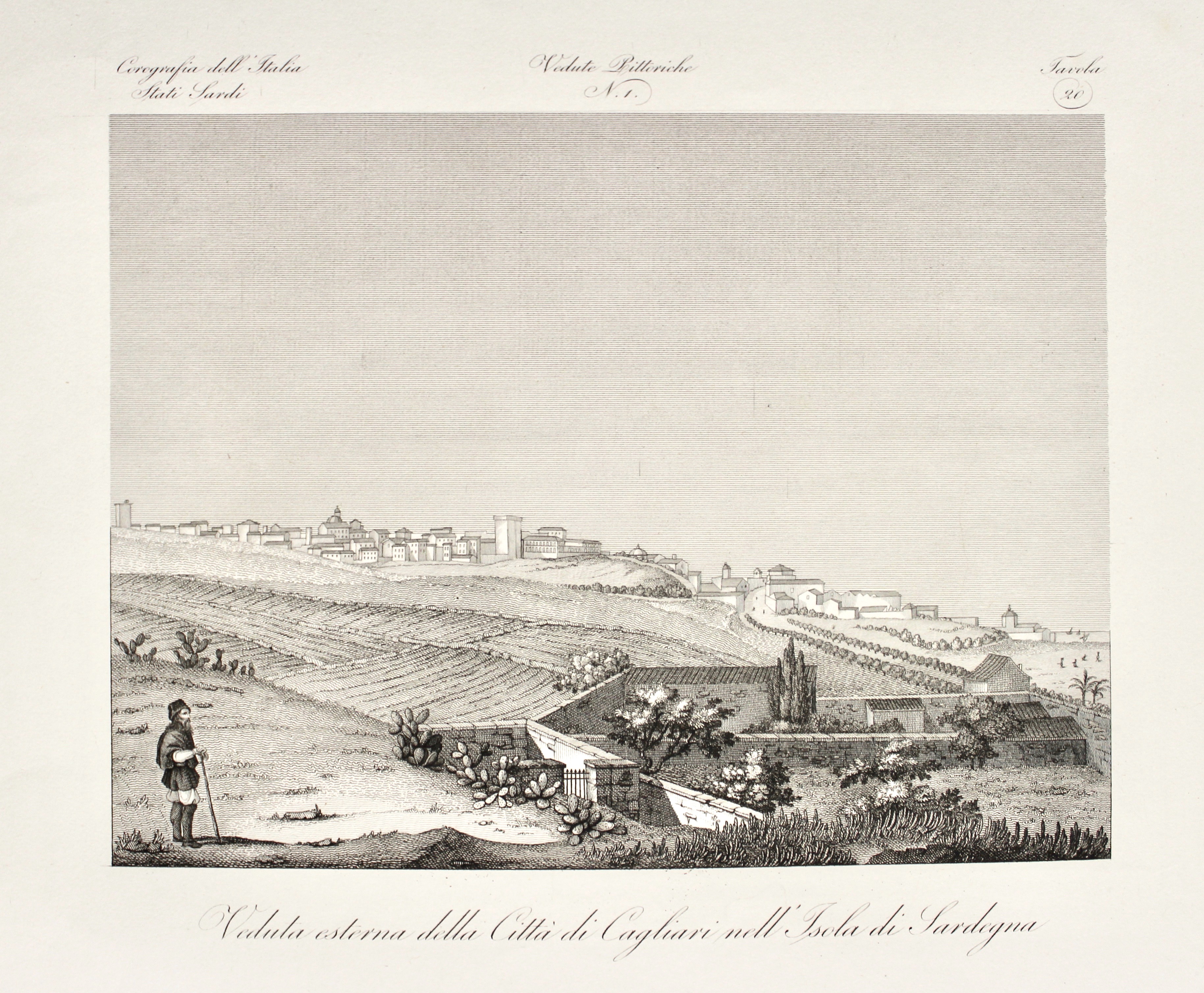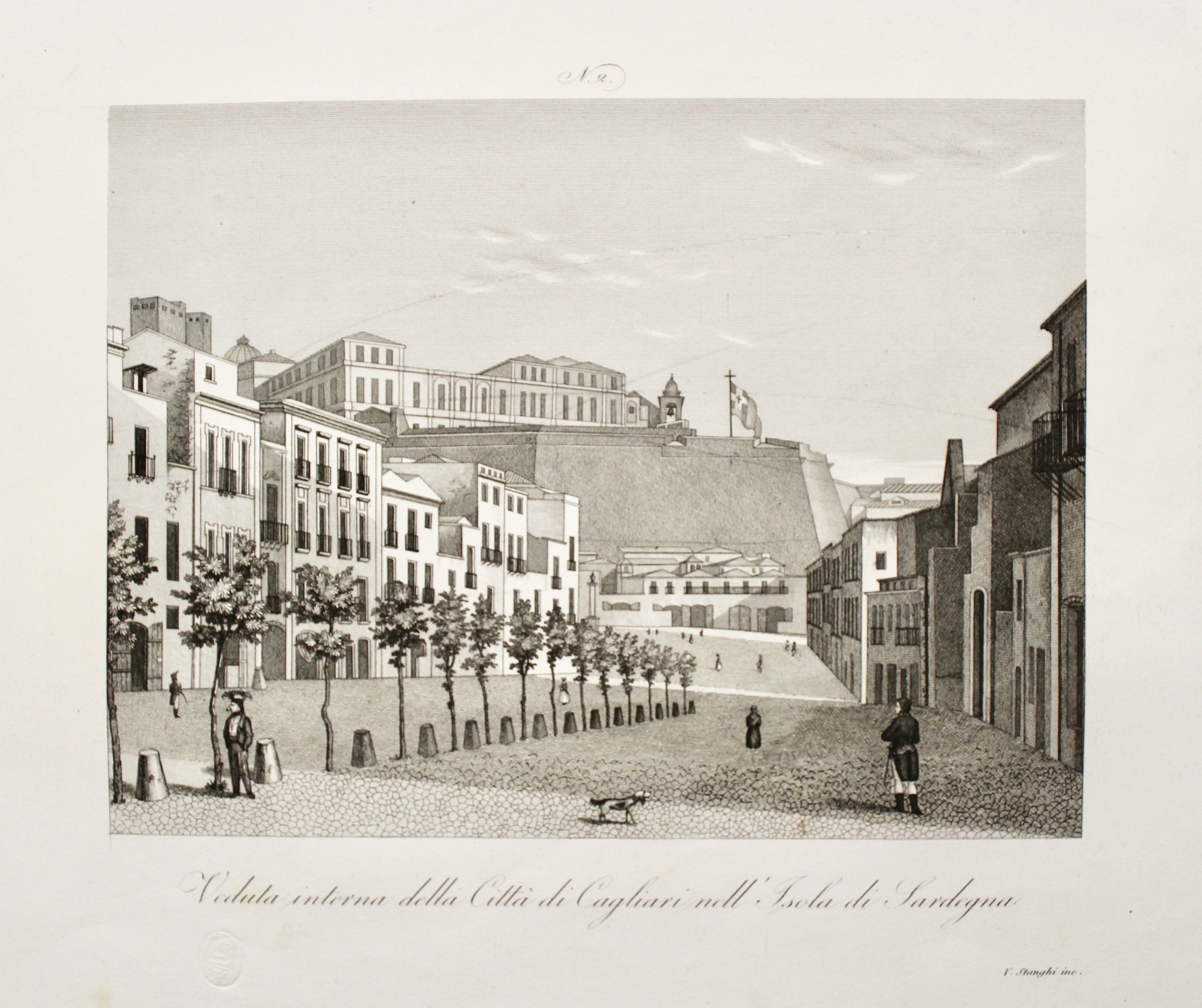 Veduta esterna della Città di Cagliari nell’isola di Sardegna (con) Veduta interna della Città di Cagliari nell’isola di Sardegna