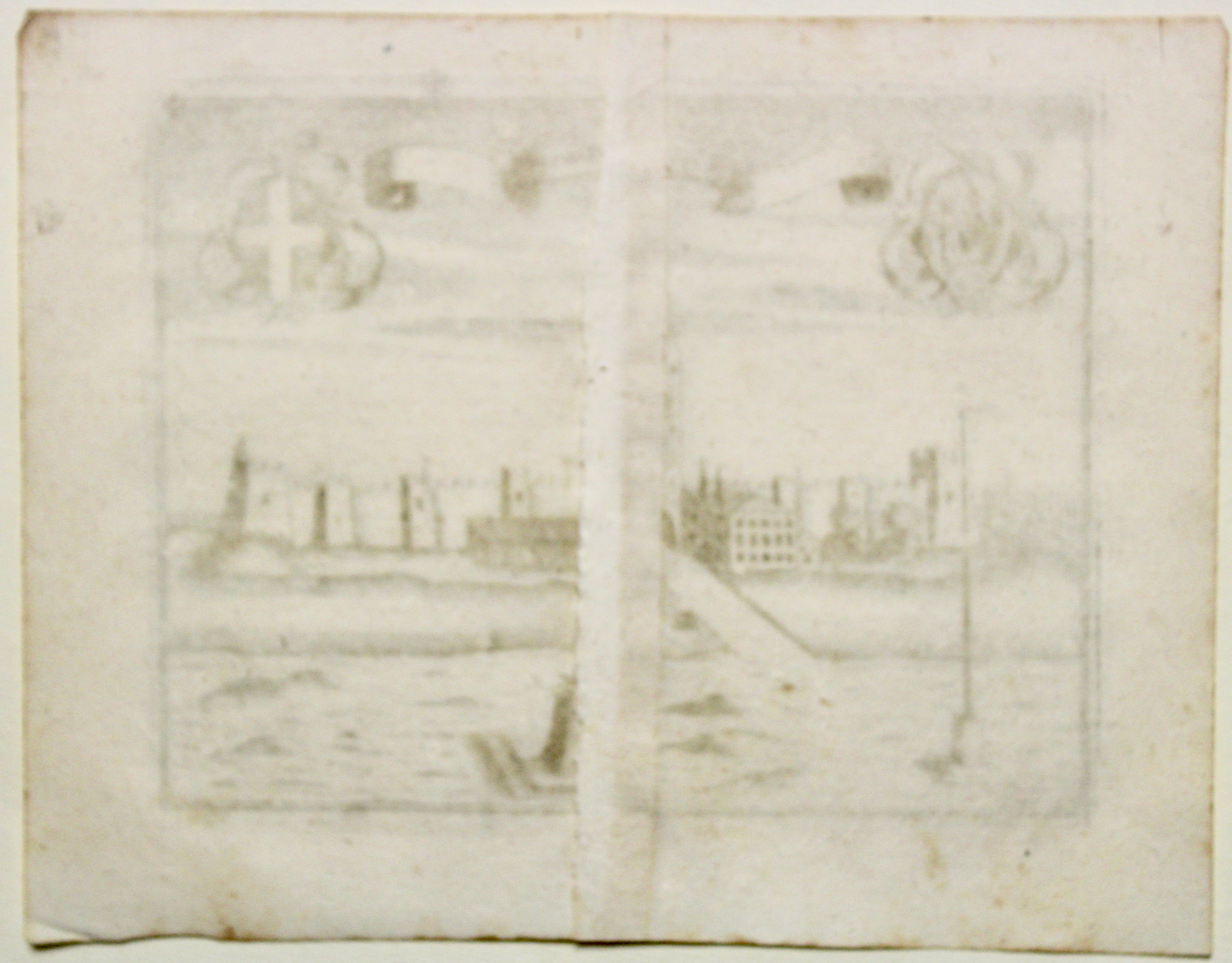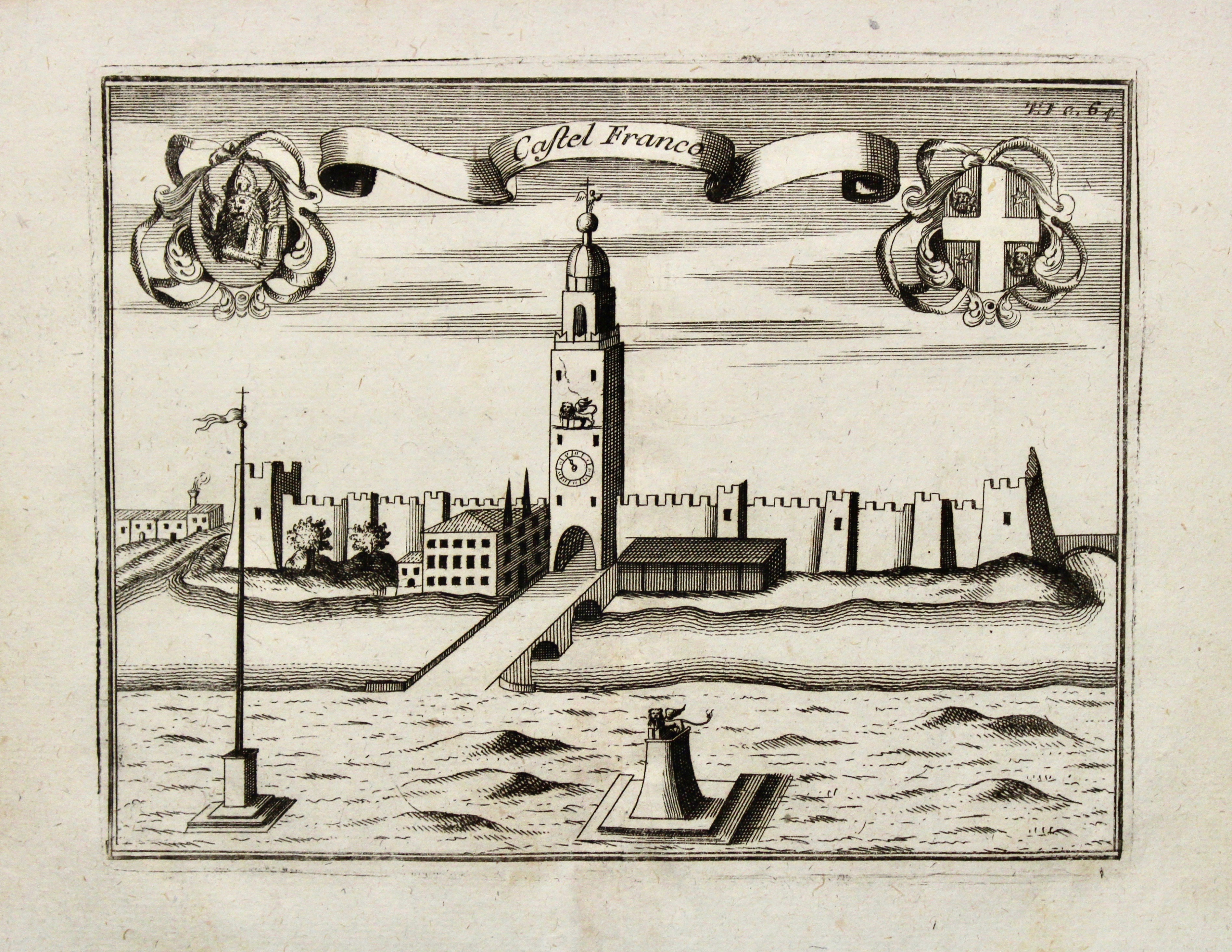 Incisione in rame, mm 150x190. Rara incisione con semplice veduta generale col castello in primo piano, tratta da “Viaggi del Padre Coronelli…Viaggio d’Italia in Inghilterra, descrittione geografico-historica…”. Coronelli, vulcanico religioso veneziano, fu autore fra la fine del secolo e gli inizi del successivo di decine di importanti pubblicazioni fra cui ricordiamo, oltre alla opera già citata, i globi costruiti per il re di Francia, “Teatro della guerra”, “Isolario”, “Atlante veneto” e “Teatro delle città“. Ottimo esemplare.