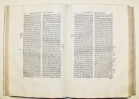 Solida legatura moderna in pergamena di riutilizzo e titolo manoscritto al dorso, tagli a spruzzo.