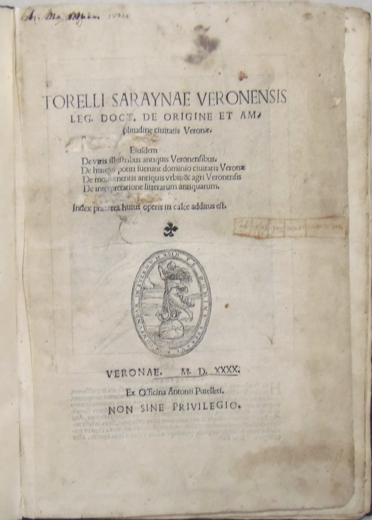 Data: Veronae,ex officina Antonii Putelleti,,1540