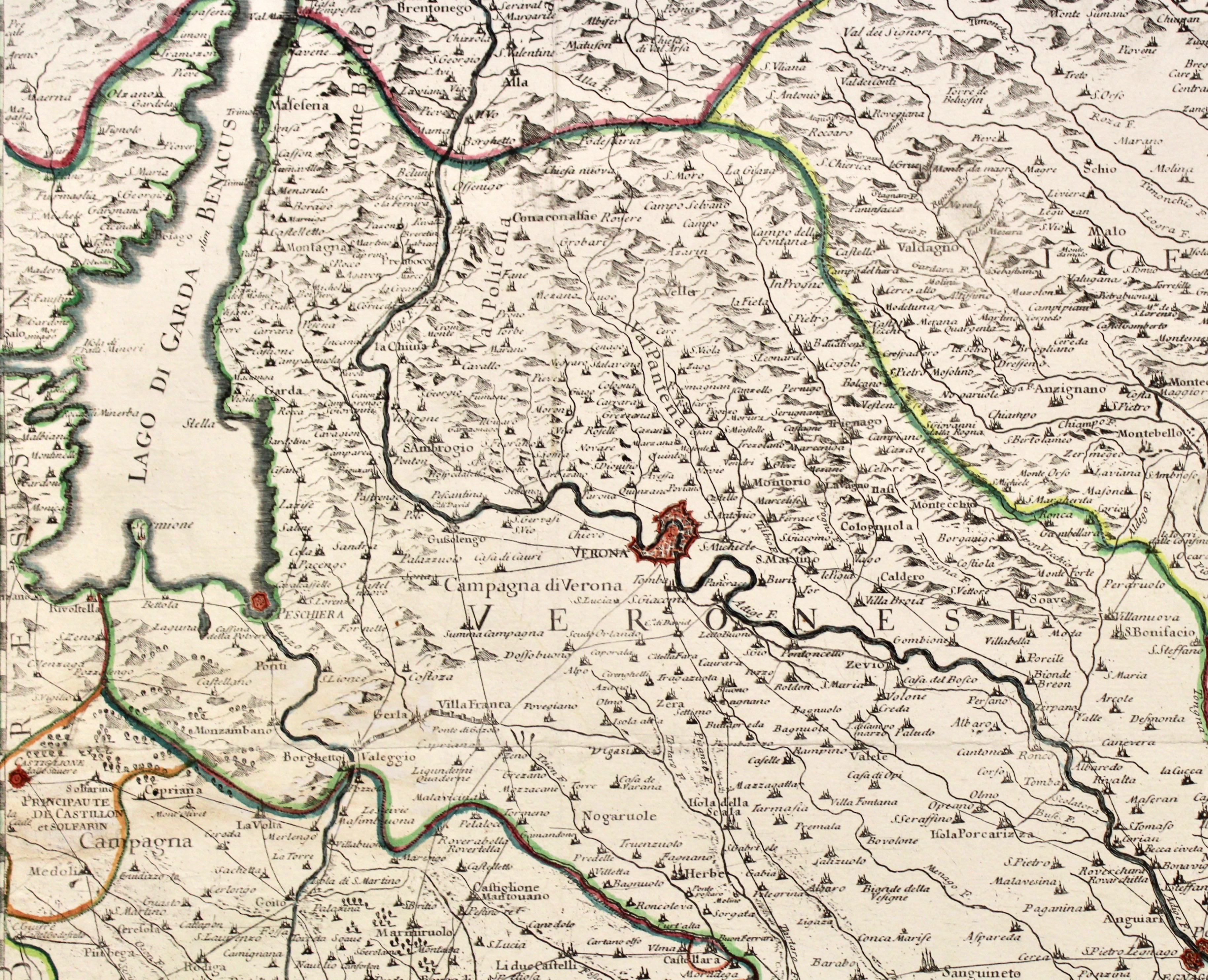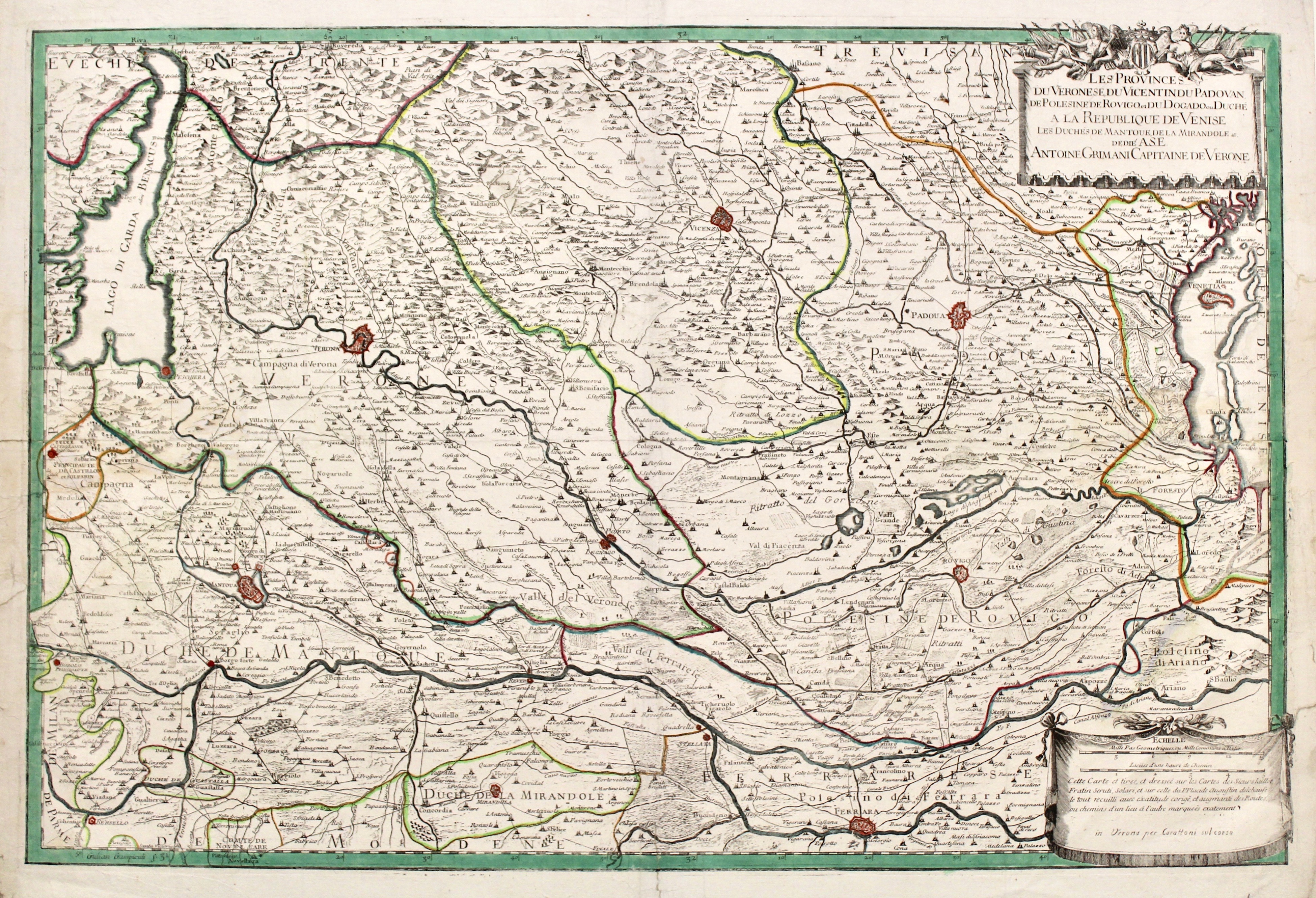 Rara carta, originariamente stampata da Jallot a inizio secolo, ristampata per Carattoni in occasione della nomina di Antonio Grimani a Capitano di Verona.